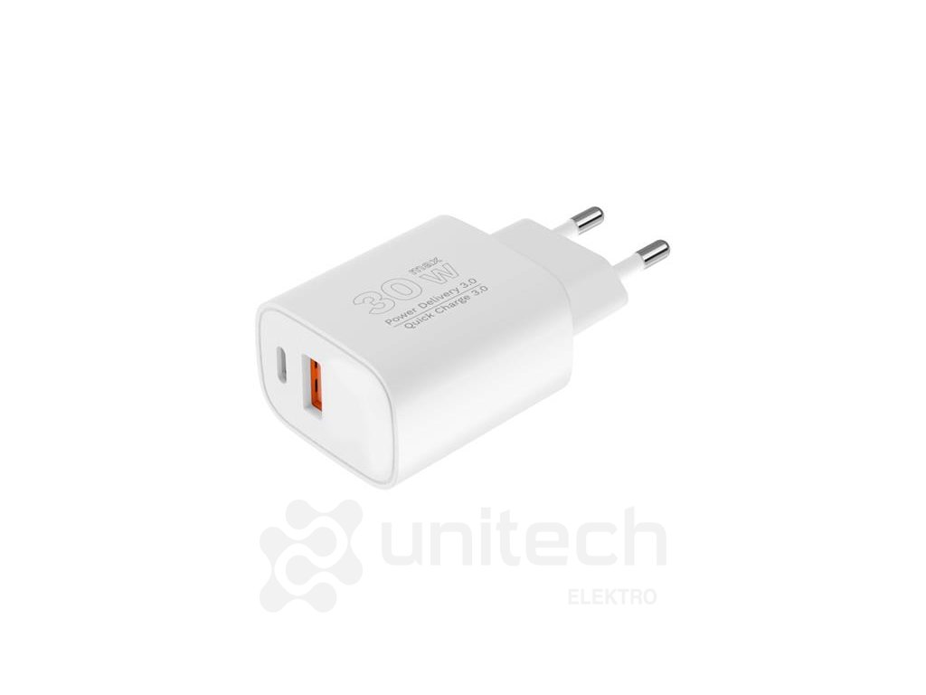 Kompaktné puzdro sieťovej nabíjačky KM0855 je vybavené dvoma portami: USB typu A a USB typu C. Vďaka tomu, ak máte doma zodpovedajúce typy káblov, môžete týmto jedným zariadením nahradiť mnoho ďalších zdrojov.