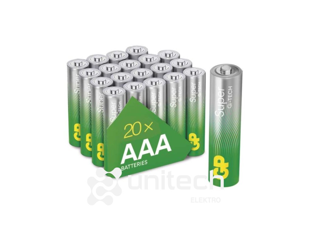 Alkalická batéria GP Super Alkaline LR03 (AAA), 20 ks