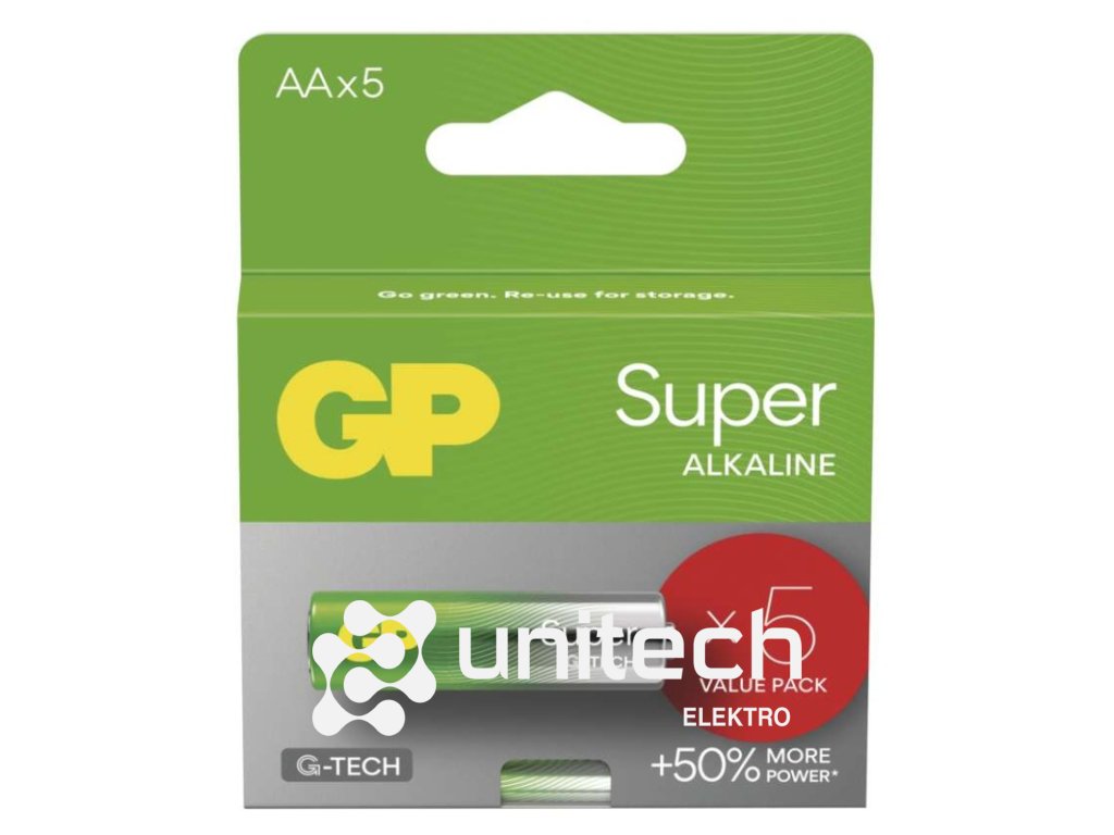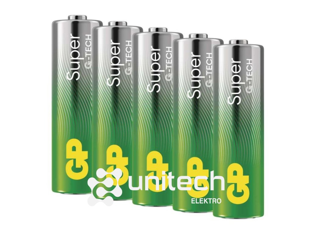 chemické zloženie: alkalické|hmotnosť: 24 g|kapacita: neuvádza sa|kategória/rada: Super Alkaline|max. skladovateľnosť: 10 rokov|možnosť nabíjania: nie|napätie: 1,5 V|počet nabíjacích cyklov: nenabíjacie|predajný obal: 5 ks, papierová krabička|prevádzková teplota: -18 °C až +50 °C|rozmer: 14,5 × 50,5 mm|typové označenie: LR6 (tužka, AA)|veľkosť batérie: AA|značka: GPDodatočné parametre