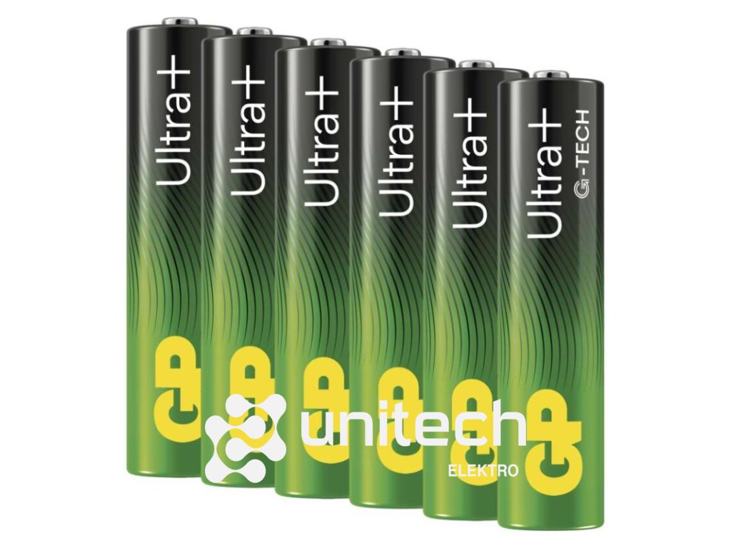 chemické zloženie: alkalické|hmotnosť: 11,5 g|kapacita: neuvádza sa|kategória/rada: Ultra Plus Alkaline|max. skladovateľnosť: 10 rokov|možnosť nabíjania: nie|napätie: 1,5 V|počet nabíjacích cyklov: nenabíjacie|predajný obal: 6 ks, papierová krabička|prevádzková teplota: -20 °C až +54 °C|rozmer: 10,5 × 44,5 mm|typové označenie: LR03 (mikrotužka, AAA)|veľkosť batérie: AAA|značka: GPDodatočné parametre