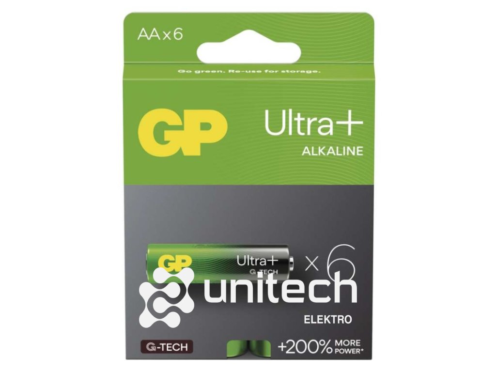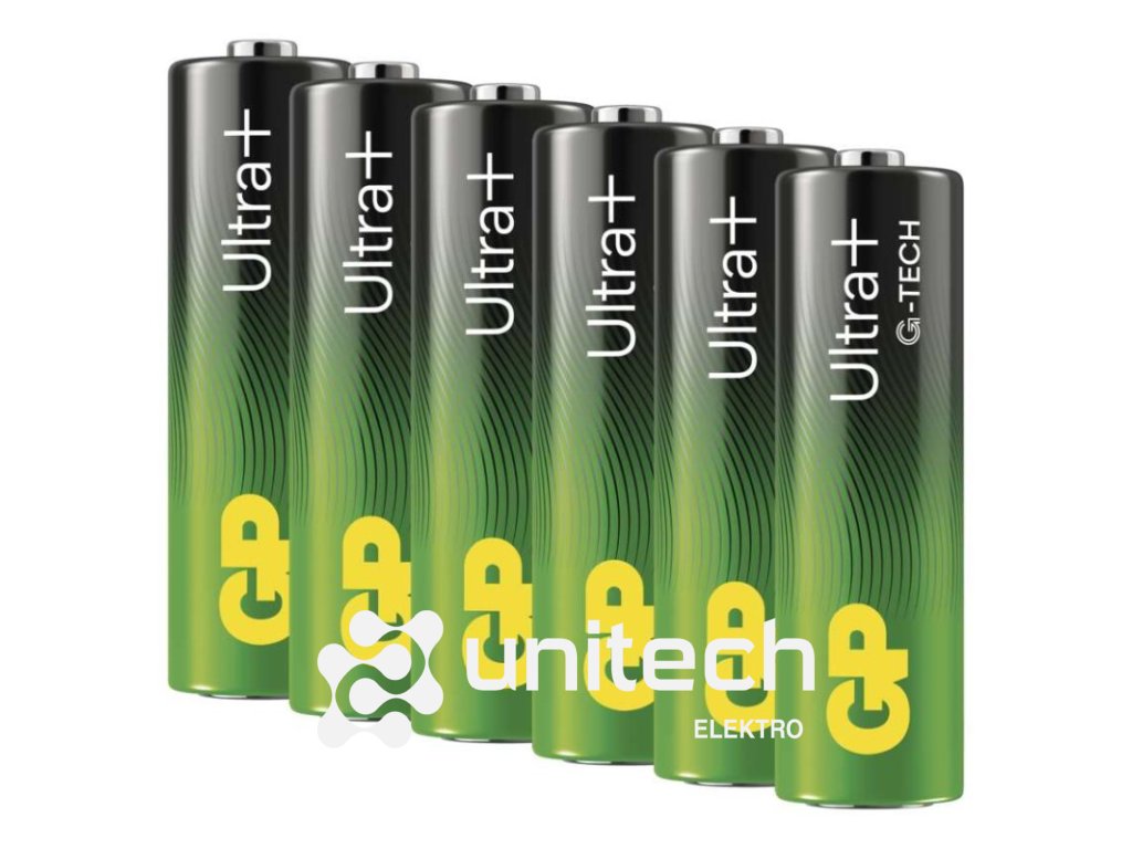 chemické zloženie: alkalické|hmotnosť: 23 g|kapacita: neuvádza sa|kategória/rada: Ultra Plus Alkaline|max. skladovateľnosť: 10 rokov|možnosť nabíjania: nie|napätie: 1,5 V|počet nabíjacích cyklov: nenabíjacie|predajný obal: 6 ks, papierová krabička|prevádzková teplota: -20 °C až +54 °C|rozmer: 14,5 × 50,5 mm|typové označenie: LR6 (tužka, AA)|veľkosť batérie: AA|značka: GPDodatočné parametre