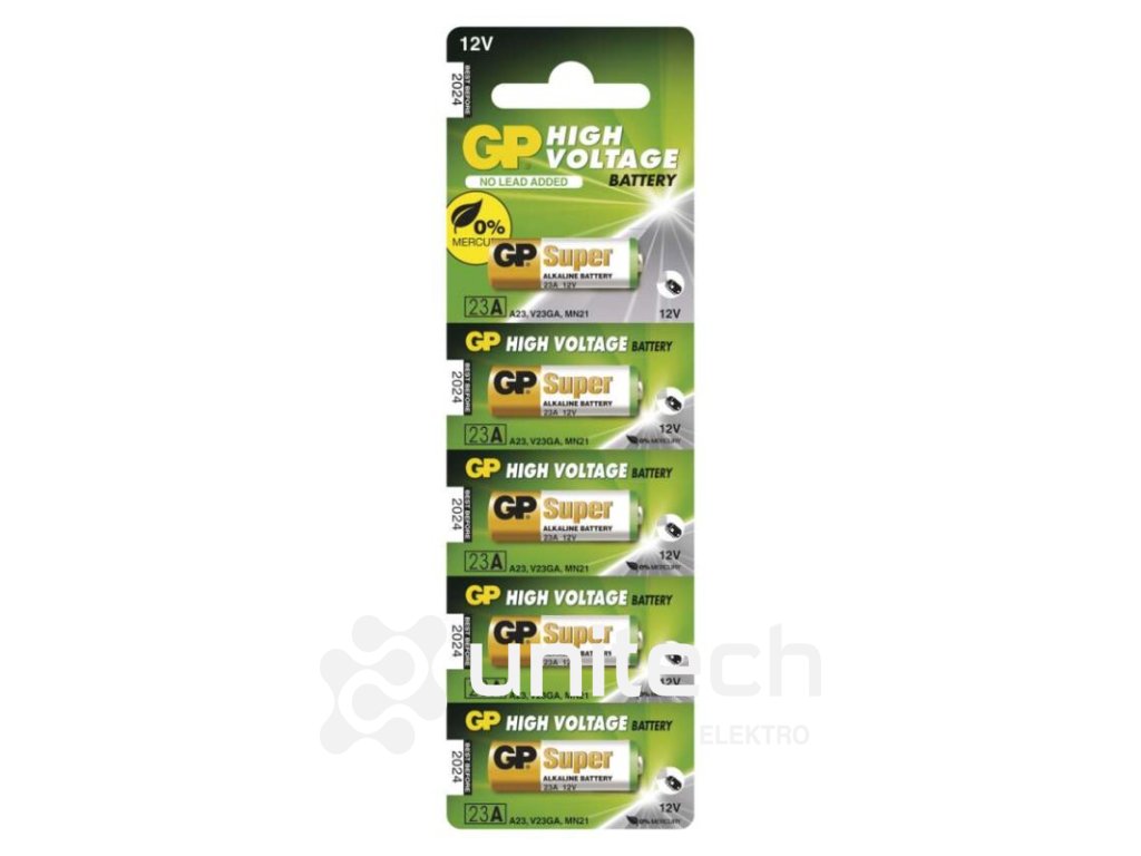 chemické zloženie: alkalické-špeciálne|hmotnosť: 7,9 g|kapacita: 55 mAh (pri záťaži 20 kOhm)|kategória/rada: High Voltage|max. skladovateľnosť: 3 roky|možnosť nabíjania: nie|napätie: 12 V|počet nabíjacích cyklov: nenabíjacie|predajný obal: 5 ks, blister|prevádzková teplota: 0 °C až +45 °C|rozmer: 10,22 × 28,2 mm|typové označenie: GP 23AF (V23GA, MN21, A23)|veľkosť batérie: neuvádza sa|značka: GPDodatočné parametre
