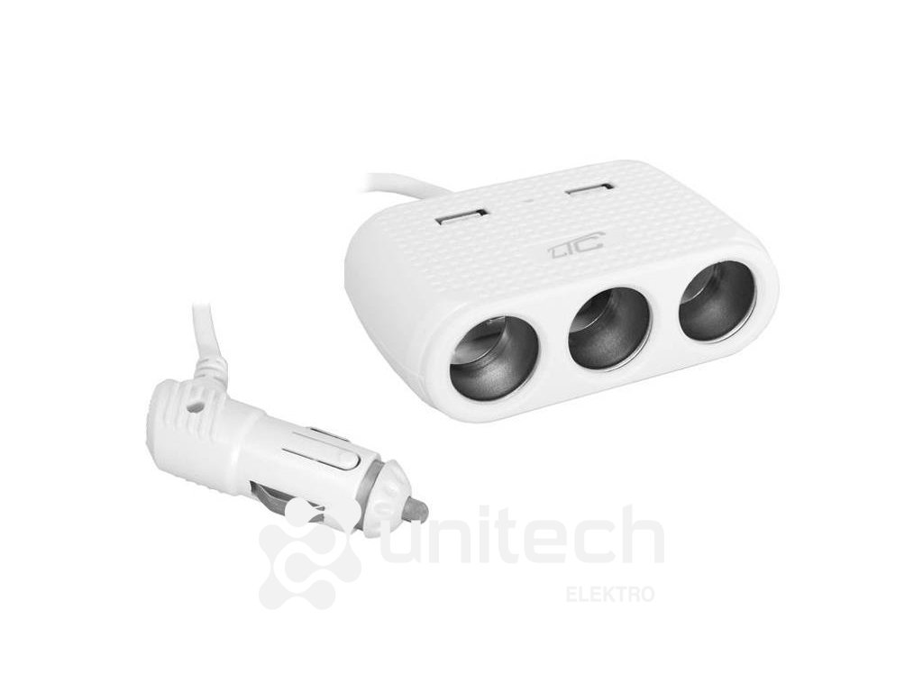 Autoadaptér napájací LTC LXAS7BLTC Adaptér CAR FIRE 3 zásuvky, 120W / 2xUSB 1A, 12 / 24V, AS7B, biely.