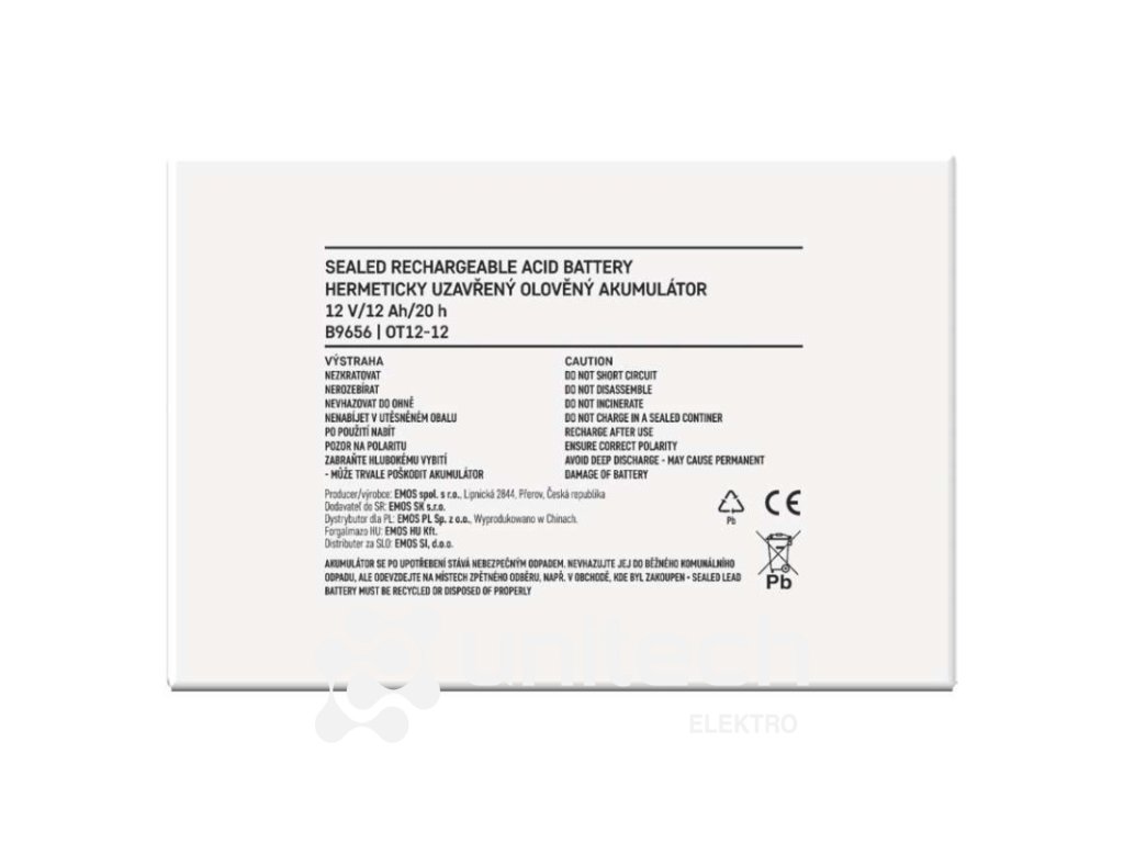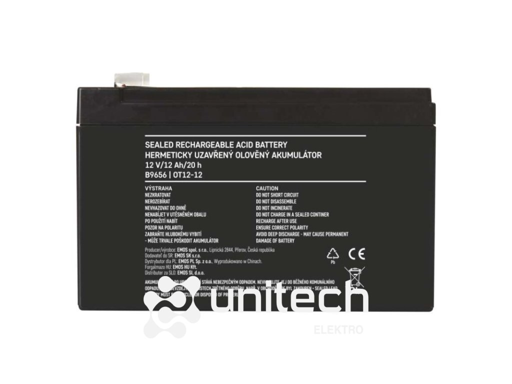 bezúdržbový: áno|chemické zloženie: Pb|EPS (elektronické požiarne systémy): áno|EZS (elektronické zabezpečovacie systémy): áno|hmotnosť: 3,3 kg|kapacita: 12 Ah|napätie: 12 V|núdzové osvetlenie: nie|optimálna životnosť: 5 rokov|PARADOX: nie|predajný obal: 1 ks|rozmer: 151 × 98 × 96 mm|technológia: AGM|terminál: faston 6,3 mm|UPS (záložné zdroje): áno|ÚSTREDNE JABLOTRON JA100K: nie|ÚSTREDNE JABLOTRON JA106K: nie|ÚSTREDNE JABLOTRON JA106K(R): nie|ÚSTREDNE JABLOTRON JA82K: nie|ÚSTREDNE JABLOTRON JA83: nie|záložné batérie pre výťahy - osvetlenie, hovor: ánoDodatočné parametre