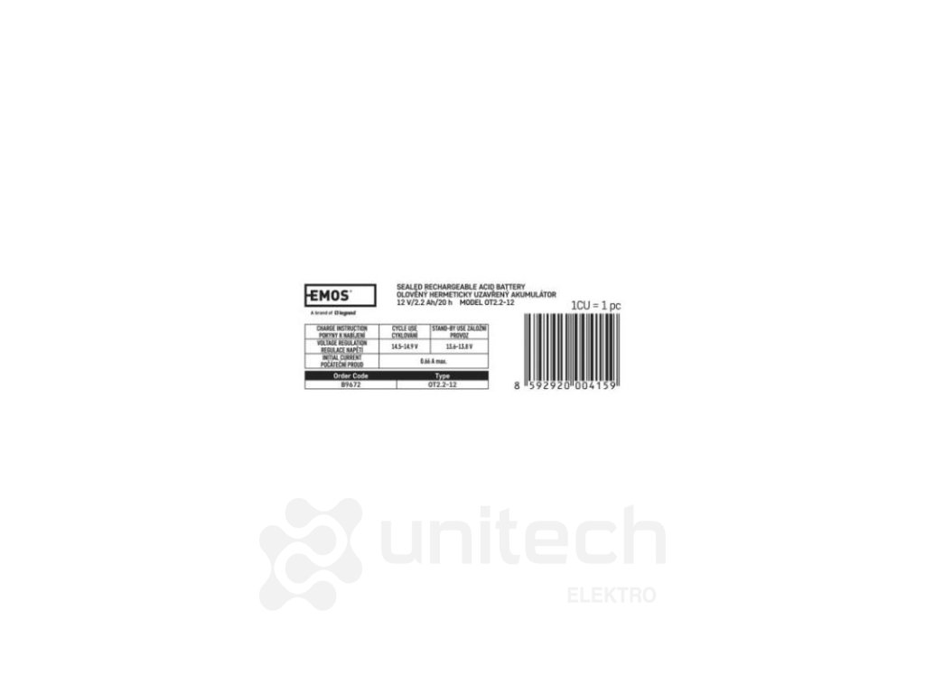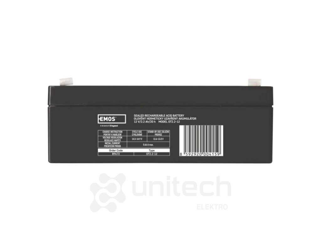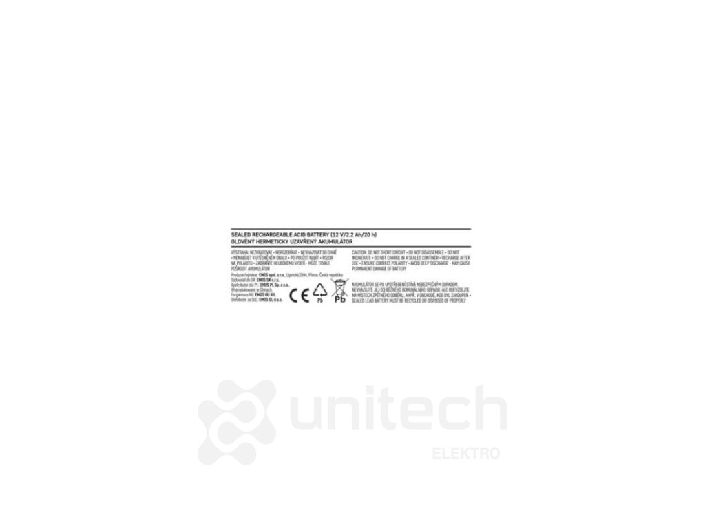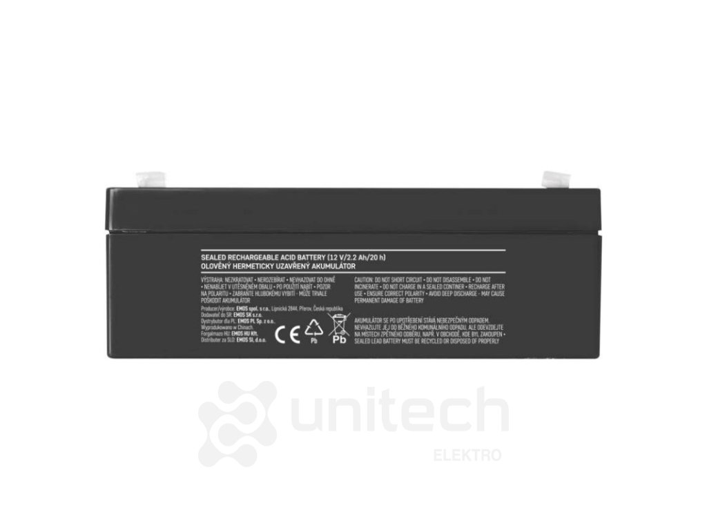 bezúdržbový: áno|chemické zloženie: Pb|EPS (elektronické požiarne systémy): nie|EZS (elektronické zabezpečovacie systémy): áno|hmotnosť: 0,95 kg|kapacita: 2,2 Ah|napätie: 12 V|núdzové osvetlenie: nie|optimálna životnosť: 5 rokov|PARADOX: nie|predajný obal: 1 ks|rozmer: 178 × 35 × 61 mm|technológia: AGM|terminál: faston 4,7 mm|UPS (záložné zdroje): nie|ÚSTREDNE JABLOTRON JA100K: áno|ÚSTREDNE JABLOTRON JA106K: nie|ÚSTREDNE JABLOTRON JA106K(R): nie|ÚSTREDNE JABLOTRON JA82K: áno|ÚSTREDNE JABLOTRON JA83: nie|záložné batérie pre výťahy - osvetlenie, hovor: nieDodatočné parametre