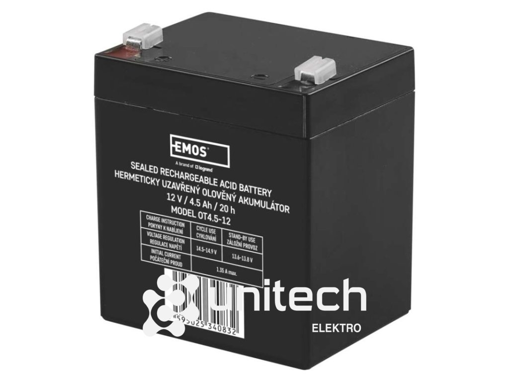 Bezúdržbový olovený akumulátor 12 V/4,5 Ah, faston 4,7 mm