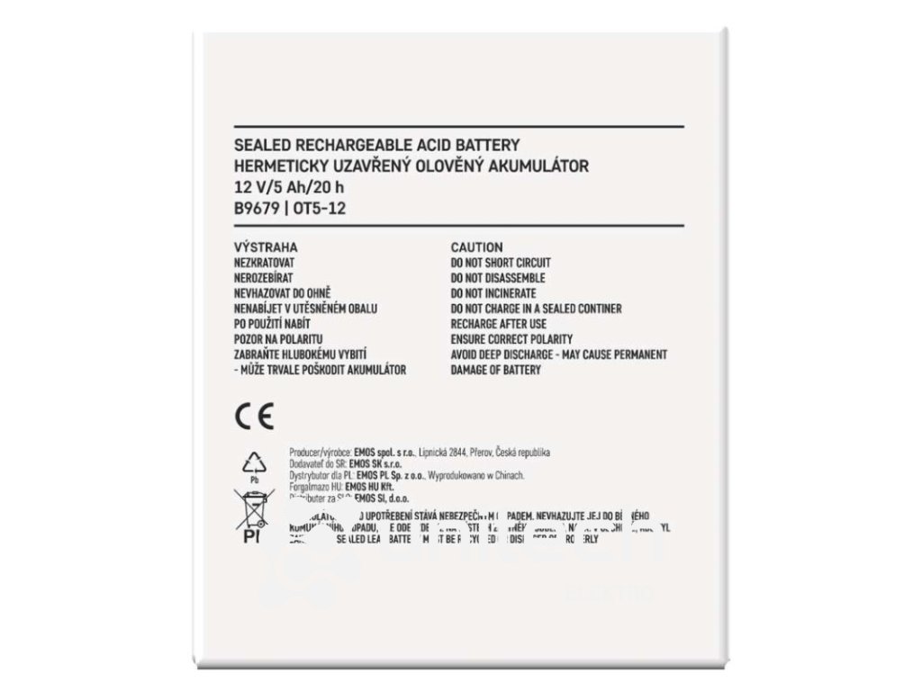 bezúdržbový: áno|chemické zloženie: Pb|EPS (elektronické požiarne systémy): áno|EZS (elektronické zabezpečovacie systémy): áno|hmotnosť: 1,65 kg|kapacita: 5 Ah|napätie: 12 V|núdzové osvetlenie: nie|optimálna životnosť: 5 rokov|PARADOX: nie|predajný obal: 1 ks|rozmer: 91 × 71 × 105 mm|technológia: AGM|terminál: faston 6,3 mm|UPS (záložné zdroje): áno|ÚSTREDNE JABLOTRON JA100K: nie|ÚSTREDNE JABLOTRON JA106K: nie|ÚSTREDNE JABLOTRON JA106K(R): nie|ÚSTREDNE JABLOTRON JA82K: nie|ÚSTREDNE JABLOTRON JA83: nie|záložné batérie pre výťahy - osvetlenie, hovor: nieDodatočné parametre