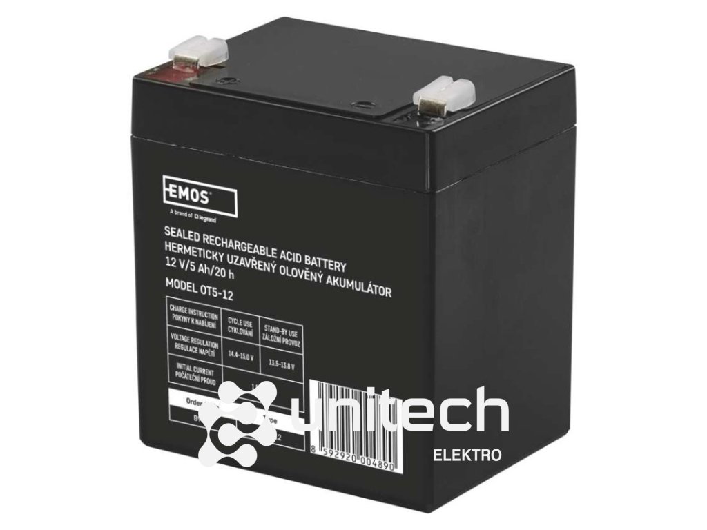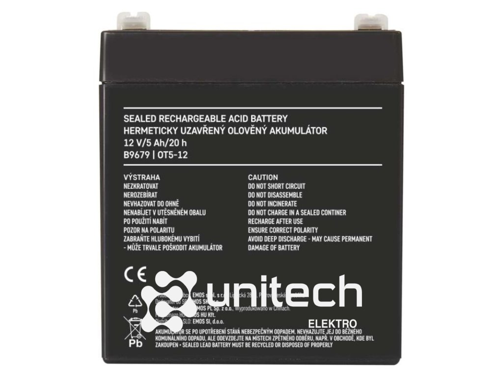 Bezúdržbový olovený akumulátor 12 V/5Ah, faston 6,3 mm