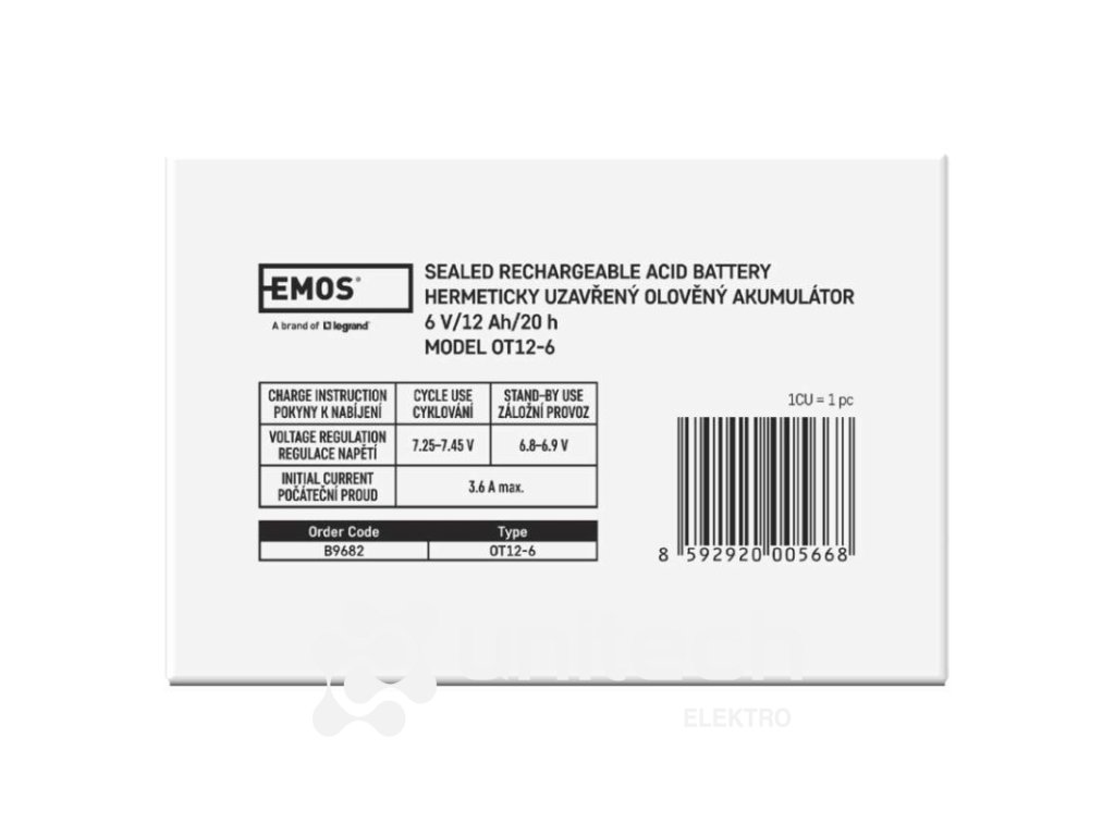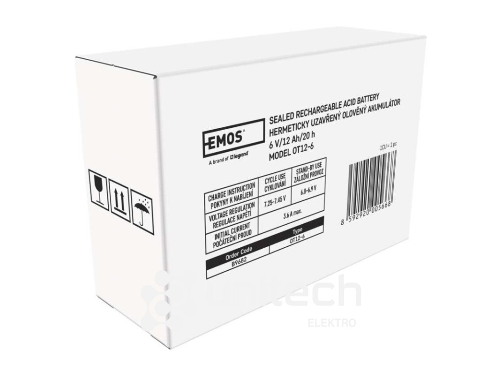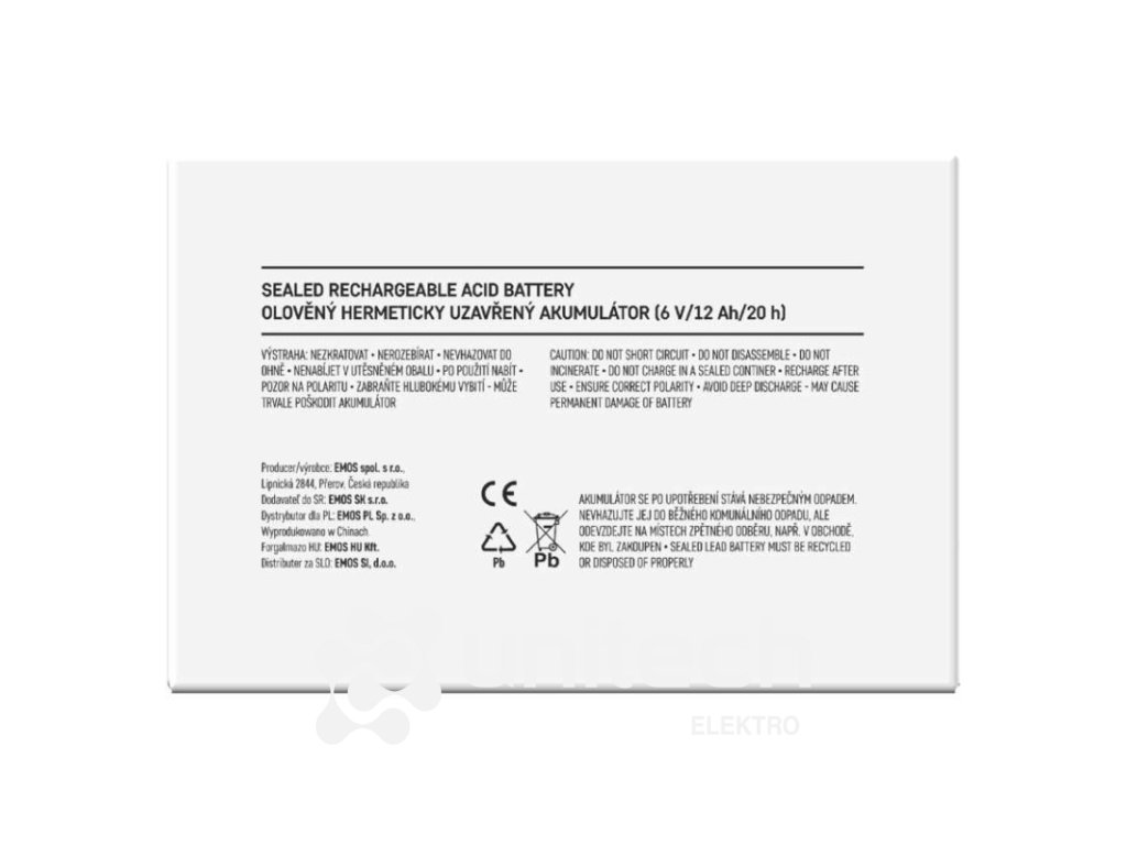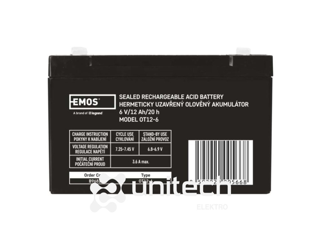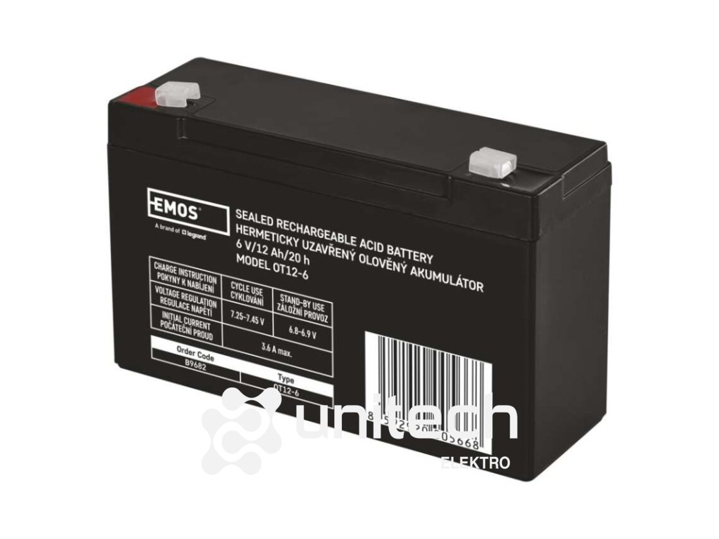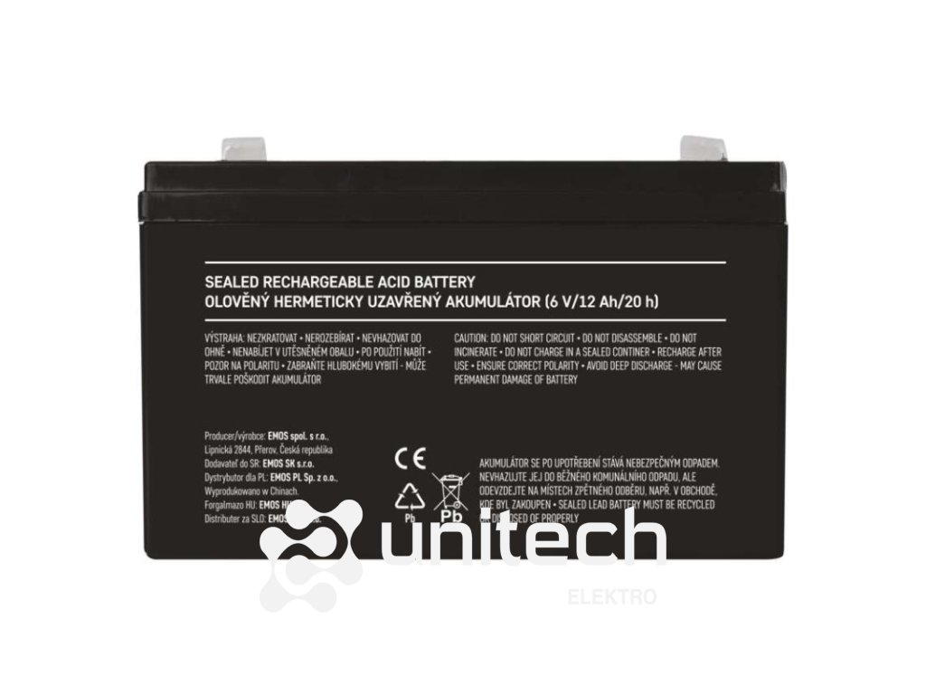 bezúdržbový: áno|chemické zloženie: Pb|EPS (elektronické požiarne systémy): áno|EZS (elektronické zabezpečovacie systémy): áno|hmotnosť: 1,8 kg|kapacita: 12 Ah|napätie: 6 V|núdzové osvetlenie: nie|optimálna životnosť: 5 rokov|PARADOX: nie|predajný obal: 1 ks|rozmer: 151 × 51 × 94 mm|technológia: AGM|terminál: faston 4,7 mm|UPS (záložné zdroje): áno|ÚSTREDNE JABLOTRON JA100K: nie|ÚSTREDNE JABLOTRON JA106K: nie|ÚSTREDNE JABLOTRON JA106K(R): nie|ÚSTREDNE JABLOTRON JA82K: nie|ÚSTREDNE JABLOTRON JA83: nie|záložné batérie pre výťahy - osvetlenie, hovor: nieDodatočné parametre