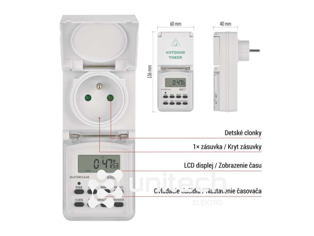 Časovač – digitálna spínacia zásuvka vonkajšia IP44