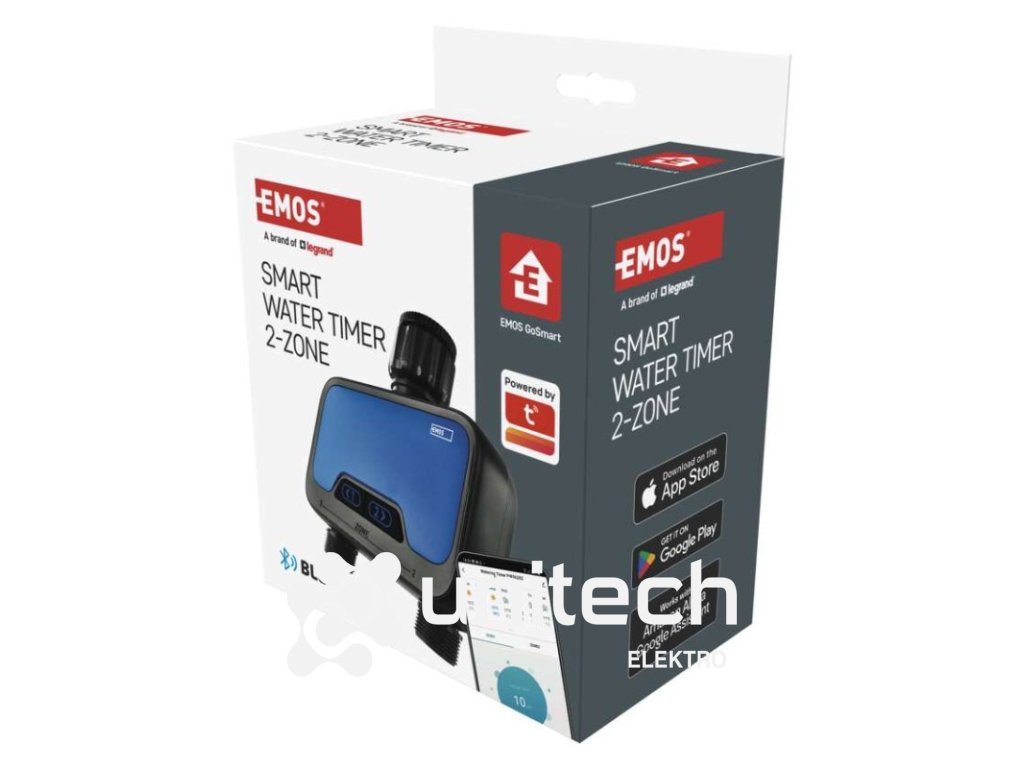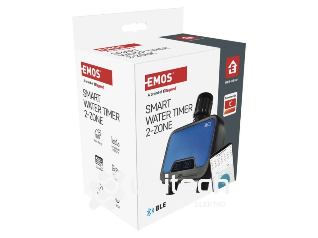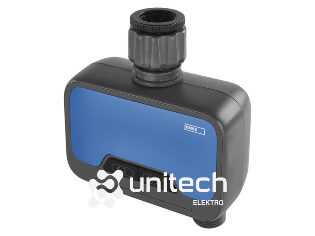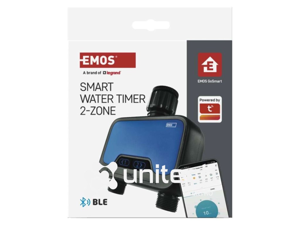 ďalšie funkcie: –|energetická trieda: –|frekvencia zavlažovania: bez limitu|jazyky aplikácie: EN, CZ, SK, PL, DE, HU, SI, FR, + 60 ďalších jazykov|kompatibilita: EMOS GoSmart, TUYA, LIDL, Smartlife, otvorený systém|krytie: IP54|manuálne zavlažovanie: áno|maximálny prietok: 35 l/min|napájanie: 4× 1,5 V AA (nie sú súčasťou balenia)|notifikácie do mobilnej aplikácie: áno|ovládanie hlasovými asistentmi: áno|podporované OS: Android, iOS|predajný obal: 1 ks, krabička|prevádzkový tlak vody: 0,5–8 bar|protokol: Bluetooth 5.0|rada: GoSmart|rozmer: 135 × 160 × 70 mm|trvanie zavlažovania: 1 minuta – 24 hodin|záručná doba: 2 roky|závit: 3/4", 1"|zavlažovacie cykly za deň: bez limituDodatočné parametre