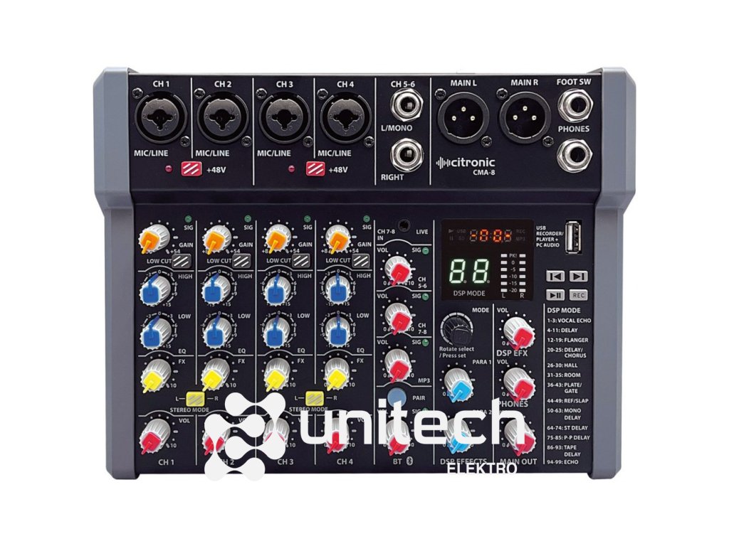 Citronic CMA-8, mixážny pult s DSP FX a BT/USB, PLU 36390