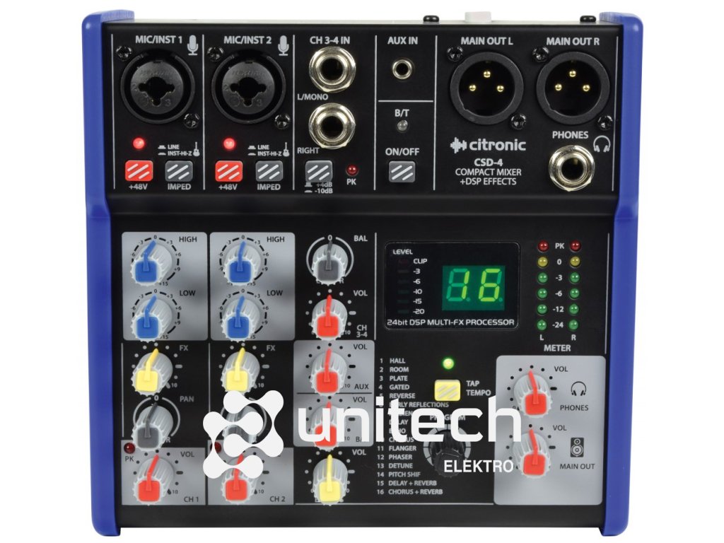 Citronic CSD-4 Kompaktný mixážny pult s Bluetooth a DSP, PLU 31618