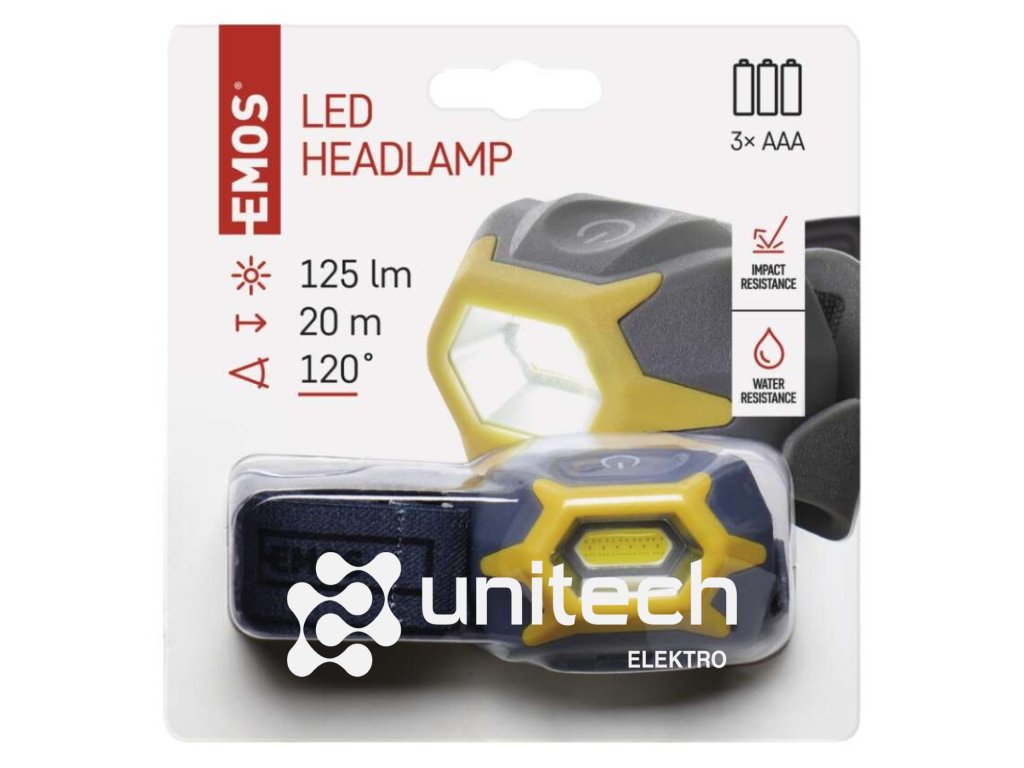 barva: šedo-žltá|batérie súčasťou balenia: nie|doba nabíjania: neuvádza sa|doba svietenia: 9–19 h|doba svietenia detail: COB LED 100 % – 9 h, COB LED 50 % – 19 h|dosvit: COB LED 100 % – 20 m, COB LED 50 % – 15 m|fokus: nie|hmotnosť: 54 g/89 g|LED indikácia nabíjania: neuvádza sa|LED indikácia stavu akumulátora: neuvádza sa|materiál: ABS plast|maximálny dosvit: 20 m|maximálny svetelný tok: 125 lm|nabíjací: nie|napájanie: 3× AAA|nárazuvzdornosť: áno|počet režimov svietenia: 3|predajný obal: 1 ks, papierový blister|príslušenstvo: neuvádza sa|reflexný pásik: nie|režimy: COB LED 100 %, COB LED 50 %, COB LED – červené blikání|rozmer: 69 × 43 × 46 mm|špeciálna funkcia: funkcia ochrany batérie|svetelný tok: COB LED 100 % – 125 lm, COB LED 50 % – 50 lm|typ batérie: LR03 (1,5 V)|typ napájacieho konektoru: neuvádza sa|uhol vyžarovania: 120°|vodeodolná: áno (IP44)|vybavenie: neuvádza sa|záručná doba: 2 roky|zdroj svetla: COB LED (biela, červená)|značka: EMOSDodatočné parametre