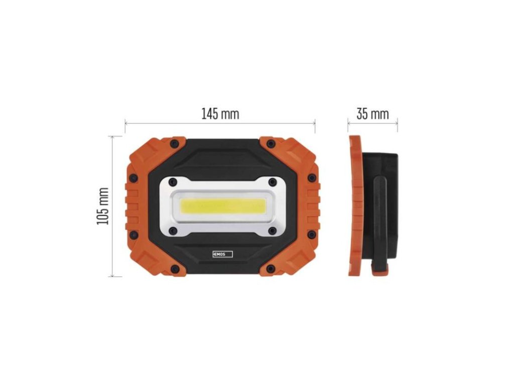 batérie súčasťou balenia: nie|doba nabíjania: neuvádza sa|doba svietenia: 8–14 h|doba svietenia detail: #|dosvit: COB LED 35 % – 20 m, COB LED 60 % – 25 m, COB 100 % – 35 m|farba: čierno-oranžová|fokus: nie|hmotnosť: 165 g|LED indikácia nabíjania: neuvádza sa|LED indikácia stavu akumulátora: neuvádza sa|materiál: plast|maximálny dosvit: 35 m|maximálny svetelný tok: 700 lm|nabíjací: nie|napájanie: 4× AA|nárazuvzdornosť: áno|počet režimov svietenia: 3|predajný obal: 1 ks, papierová krabička|príslušenstvo: neuvádza sa|režimy: COB LED 35 %, COB LED 60 %, COB 100 %|rozmer: 145 ×105 × 35 mm|špeciálna funkcia: funkcia rýchleho vypnutia|svetelný tok: COB LED 35 % – 250 lm, COB LED 60 % – 400 lm, COB 100 % – 700 lm|typ batérie: LR6 (1,5 V)|typ napájacieho konektoru: neuvádza sa|vodeodolná: áno (IP43)|vybavenie: otočná rukoväť|záručná doba: 2 roky|zdroj svetla: COB LED|značka: EMOSDodatočné parametre