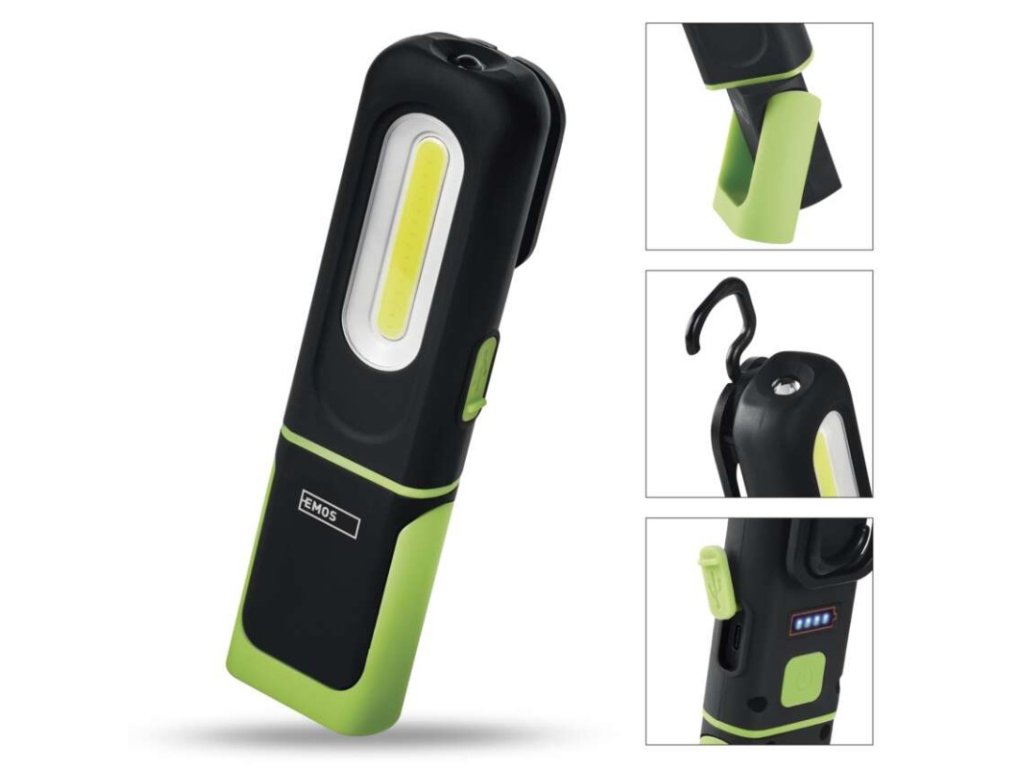 batérie súčasťou balenia: áno|doba nabíjania: 2–4 h|doba svietenia: 3–7 h|doba svietenia detail: COB LED 100 % – 3 h, COB LED 33 % – 5,5 h, SMD LED 100 % – 7 h|dosvit: COB LED 100 % – 25 m, COB LED 33 % – 15 m, SMD LED 100 % – 45 m|farba: zeleno-čierná|fokus: nie|hmotnosť: 110 g|LED indikácia nabíjania: áno|LED indikácia stavu akumulátora: áno|materiál: ABS plast + guma|maximálny dosvit: 45 m|maximálny svetelný tok: 330 lm|nabíjací: áno|napájanie: Li-Ion|nárazuvzdornosť: áno|počet režimov svietenia: 3|predajný obal: 1 ks, krabica|príslušenstvo: USB kábel|režimy: COB LED 100 %, COB LED 33 %, SMD LED 100 %|rozmer: 41 × 29 × 154 mm|špeciálna funkcia: funkcia rýchleho vypnutia, funkcia ochrany batérie|svetelný tok: COB LED 100 % – 330 lm, COB LED 33 % – 100 lm, SMD LED 100 % – 60 lm|typ batérie: 1 200 mAh/3,7 V|typ napájacieho konektoru: USB C|vodeodolná: áno (IP43)|vybavenie: otočná naklápacie rukoväť, 1× klip, 1× magnet, 1× hák|záručná doba: 2 roky|zdroj svetla: COB LED + SMD LED|značka: EMOSDodatočné parametre