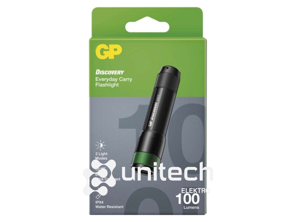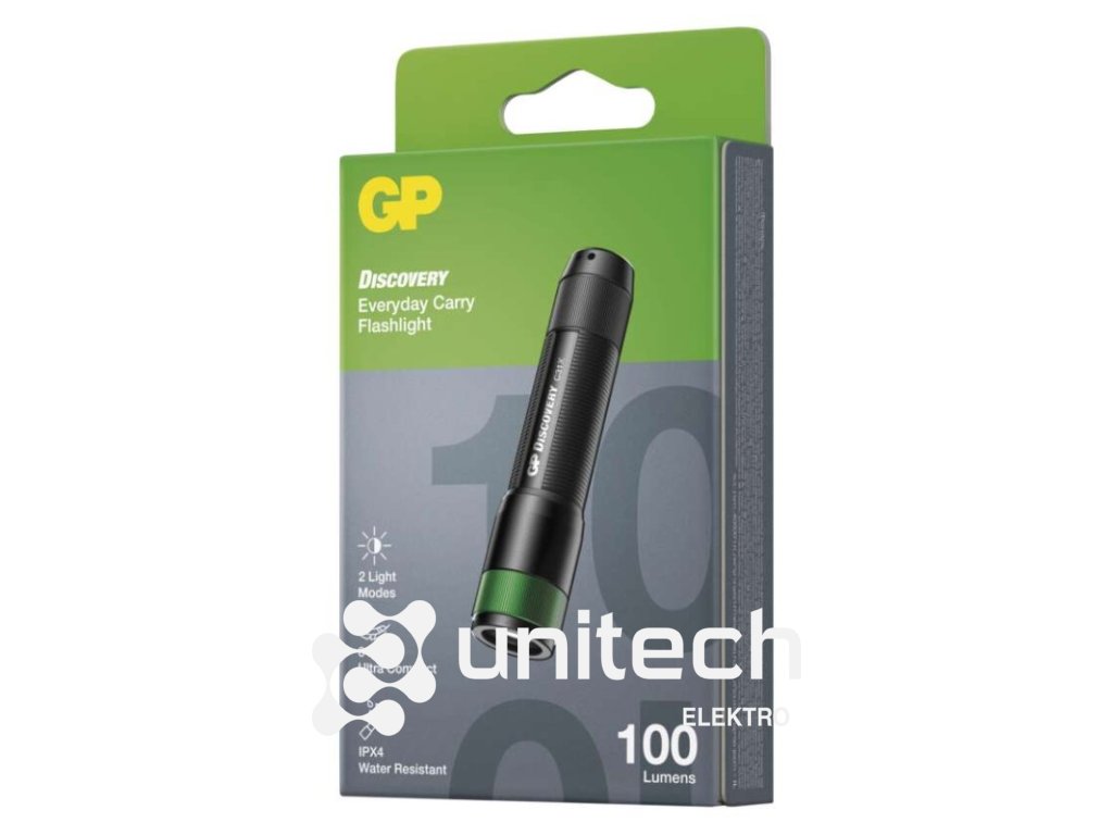 batérie súčasťou balenia: áno|doba nabíjania: nenabíjacie|doba svietenia: 2–7 hodín|doba svietenia detail: 100 % – 2 hod.; 30 % – 7 hod.|dosvit: 100 % – 75 m, 30 % – 45 m|farba: čierna|fokus: nie|hmotnosť: 64 g|LED indikácia nabíjania: nie|LED indikácia stavu akumulátora: nie|materiál: hliník|maximálny dosvit: 75 m|maximálny svetelný tok: 100 lm|nabíjací: nie|napájanie: 1× AA|nárazuvzdornosť: 1 m|počet režimov svietenia: 2|predajný obal: 1 ks, papierová krabička|príslušenstvo: neuvádza sa|režimy: 100 %, 30 %|rozmer: 22,5 × 95 mm|špeciálna funkcia: neuvádza sa|svetelný tok: 100 % – 100 lm, 30 % – 30 lm|typ batérie: LR6 (1,5 V)|typ napájacieho konektoru: neuvádza sa|vodeodolná: IPX4|vybavenie: textilné pútko|zdroj svetla: CREE SMD LED|značka: GPDodatočné parametre