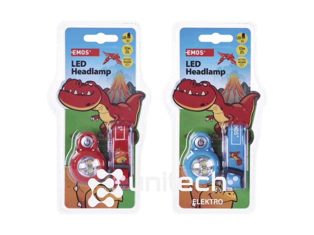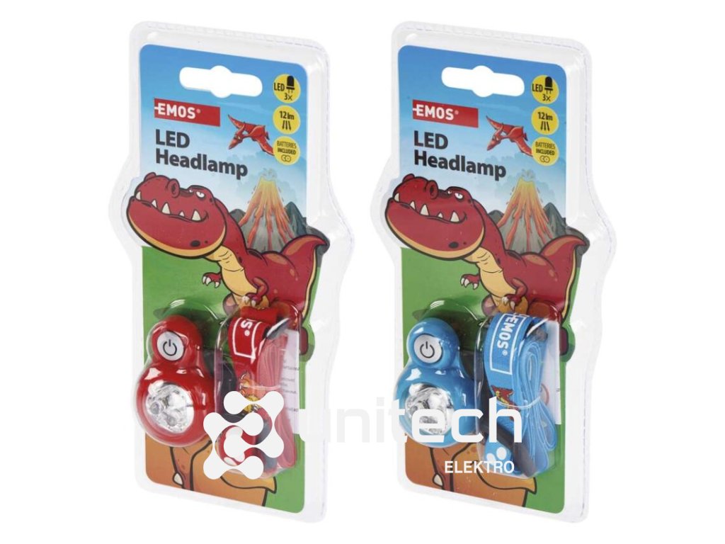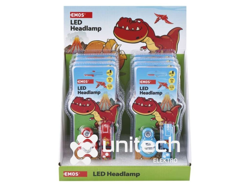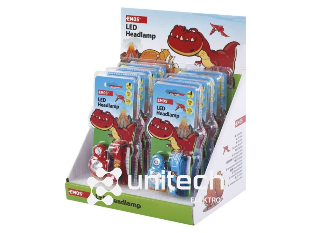Detská LED čelovka Dino, 2× CR2032, 8 ks, display box