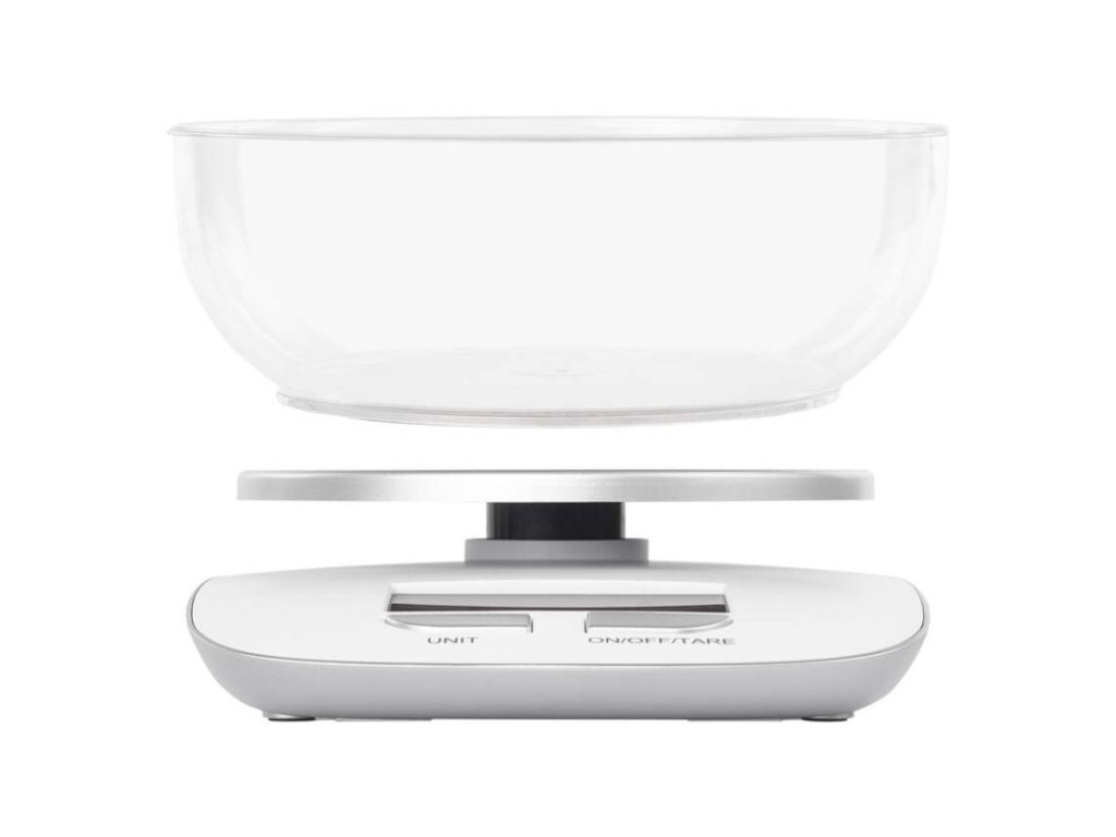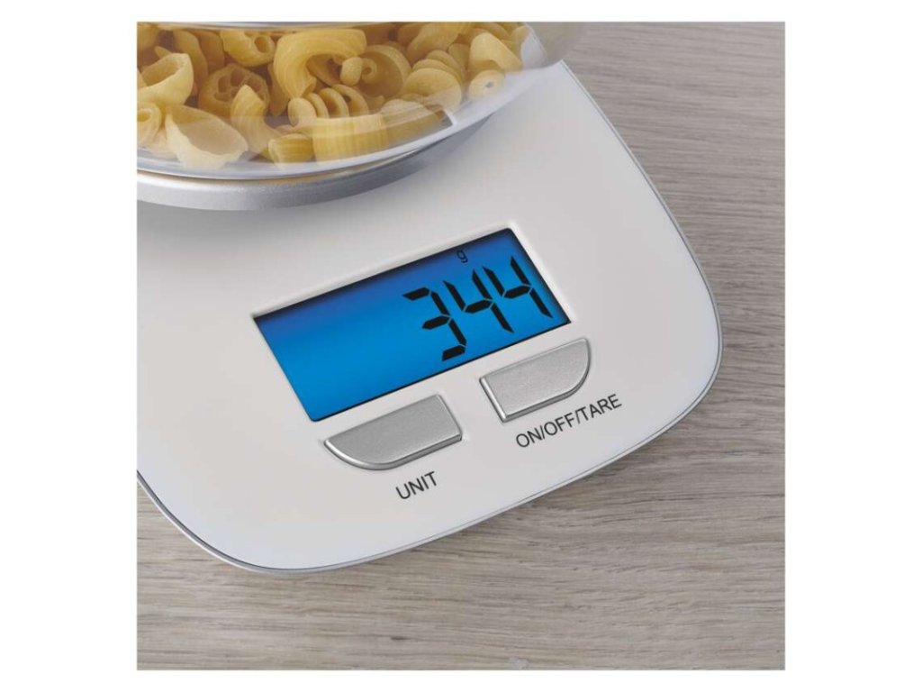 automatické vypnutie: po 1 minúte|Bluetooth: nie|BMI index – meranie tuku, vody a svalovej hmoty: nie|farba: biela|funkcia dovažovania: áno|indikácia slabých batérií: áno|indikátor preťaženia: áno|jednotky váhy: g, kg, lb, oz|LCD displej: áno|max. záťaž: 5 kg|napájanie: 2× 1,5 V AAA (nie sú súčasťou balenia)|pamäť: nie|podsvietený displej: áno|povrch váhy: ABS plast|predajný obal: 1 ks, krabička|presnosť váženia: 1 g|produkt: kuchynská váha|rozmer: 49 × 150 × 218 mmDodatočné parametre