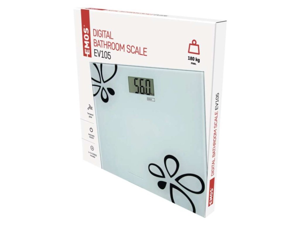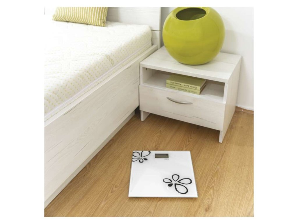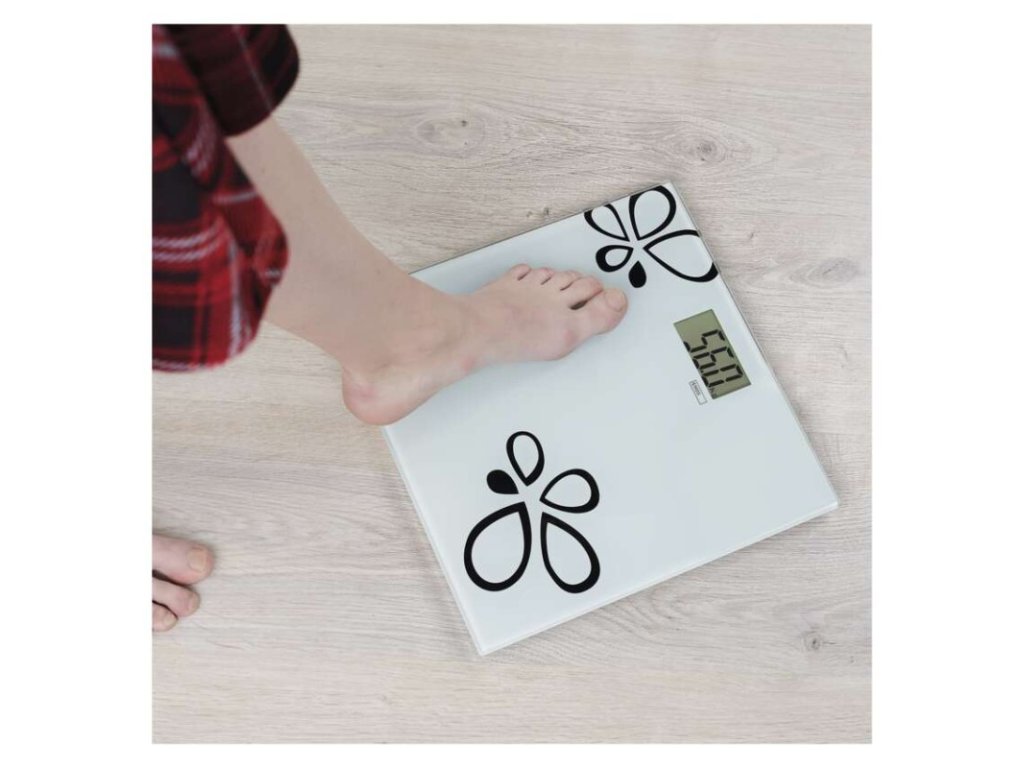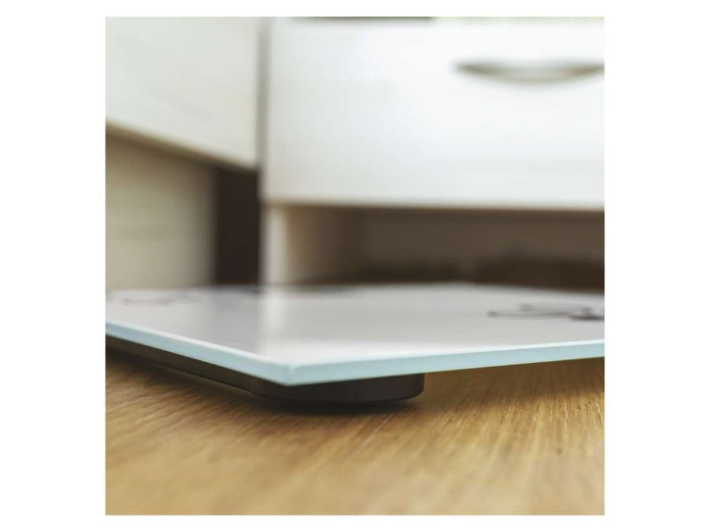 automatické vypnutie: po 10 sekundách|Bluetooth: nie|BMI index – meranie tuku, vody a svalovej hmoty: nie|farba: biela|funkcia dovažovania: nie|indikácia slabých batérií: áno|indikátor preťaženia: nie|jednotky váhy: kg, lb, St|LCD displej: áno|max. záťaž: 180 kg|napájanie: 1× 3 V CR2032 (súčasťou balenia)|pamäť: nie|podsvietený displej: nie|povrch váhy: tvrdené sklo|predajný obal: 1 ks, krabica|presnosť váženia: 100 g|produkt: osobná váha|rozmer: 20 × 300 × 300 mmDodatočné parametre