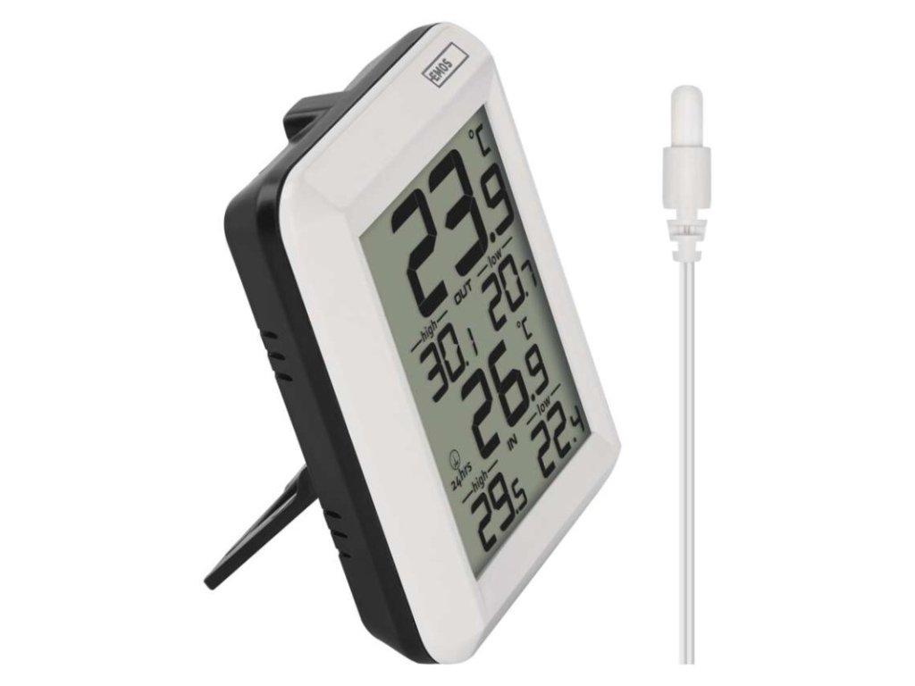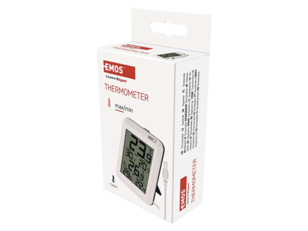 12/24 formát času: nie|budík: nie|časové pásma: nie|dátum: nie|dosah vo voľnom priestore: nie|drôtová sonda k čidlu: 0,9 m|farebný displej (black mask) podsvietený: nie|funkcie stopky: nie|hodiny: nie|kalendár: nie|LED podsvietenie displeja: nie|magnet na pripevnenie: nie|min. a max. teplota: áno|možné ďalšie čidlo: nie|možnosť nastavenia jednotky teploty °C/°F: °C/°F|možnosť zavesenia na stenu: áno|napájanie čidla: nie|napájanie stanice: 2× 1,5 V AAA (nie sú súčasťou balenia)|odpočet času max. od: nie|opakované budenie: nie|pamäť poslednej hodnoty: nie|predajný obal: 1 ks, krabička|prenosová frekvencia: nie|prevedenie teplomera: drôtový|rozmer čidla: nie|rozmer hlavnej jednotky: 19 × 58 × 75 mm|sieťový adaptér: nie|teplotná výstraha: nie|teplotný index: nie|trend teploty: nie|trend tlaku: nie|trvalé podsvietenie: nie|veľkosť displeja: 41 × 52 mm|vnútorná teplota: 0 °C až +60 °C, rozlíšenie 0,1 °C|vnútorná vlhkosť: nie|vonkajšia teplota: -40 °C až +60 °C, rozlíšenie 0,1 °C|vonkajšia vlhkosť: nieDodatočné parametre