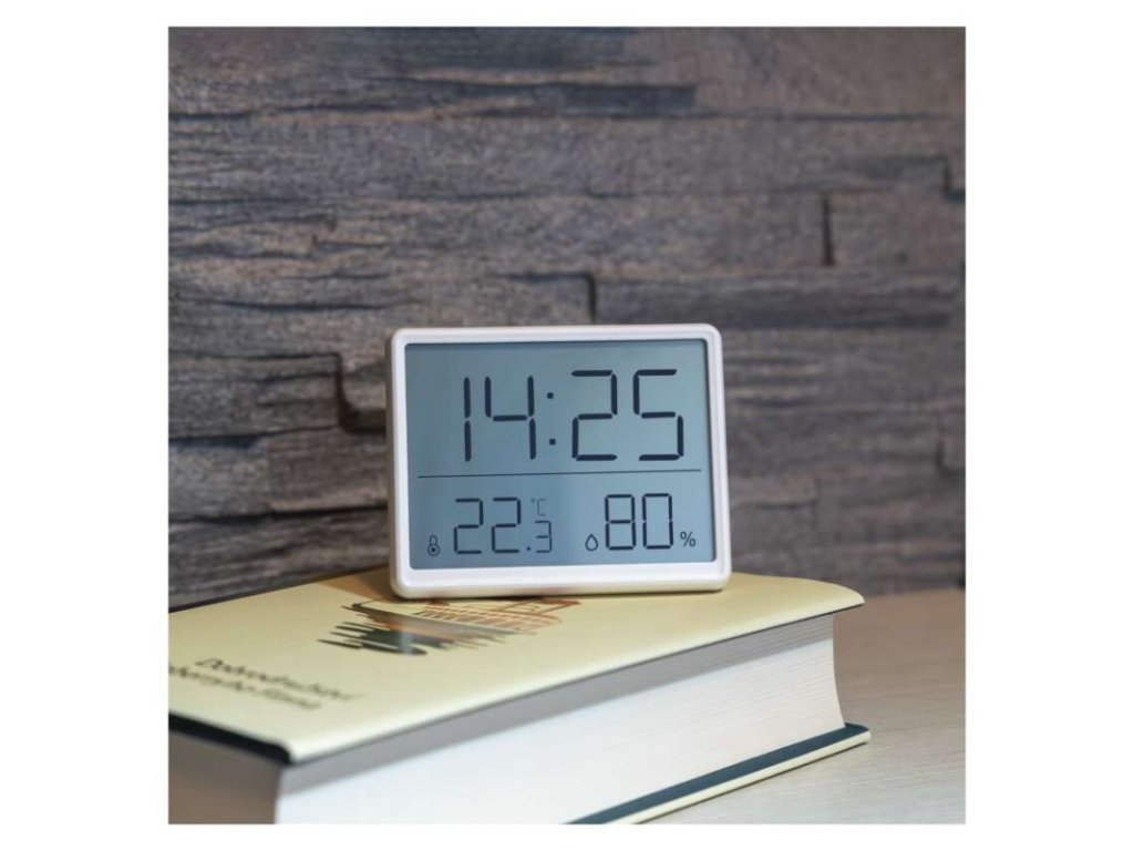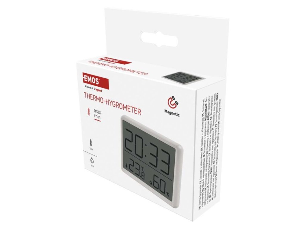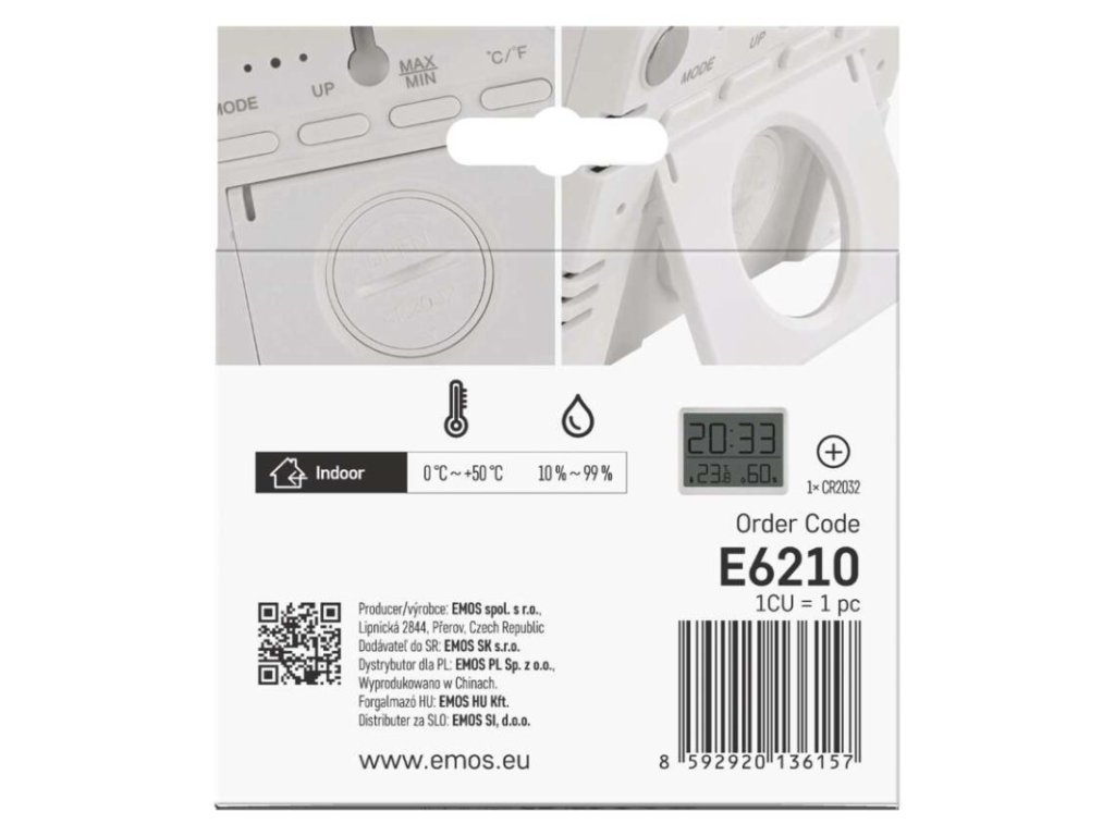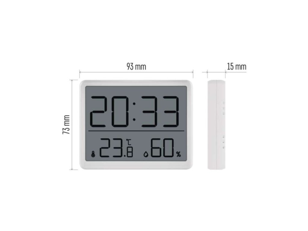 12/24 formát času: áno|budík: áno|časové pásma: nie|dátum: áno|dosah vo voľnom priestore: nie|drôtová sonda k čidlu: nie|farebný displej (black mask) podsvietený: nie|funkcie stopky: nie|hodiny: áno, quartz|kalendár: nie|LED podsvietenie displeja: nie|magnet na pripevnenie: áno|min. a max. teplota: áno|možné ďalšie čidlo: nie|možnosť nastavenia jednotky teploty °C/°F: áno|možnosť zavesenia na stenu: áno|napájanie čidla: nie|napájanie stanice: 1× 3 V CR2032 (súčasťou balenia)|odpočet času max. od: nie|opakované budenie: nie|pamäť poslednej hodnoty: nie|predajný obal: 1 ks, krabička|prenosová frekvencia: nie|prevedenie teplomera: bezdrôtový|rozmer čidla: nie|rozmer hlavnej jednotky: 93 × 15 × 73 mm|sieťový adaptér: nie|teplotná výstraha: nie|teplotný index: nie|trend teploty: nie|trend tlaku: nie|trvalé podsvietenie: nie|veľkosť displeja: 61 × 82 mm|vnútorná teplota: 0 °C až +50 °C, rozlíšenie 0,1 °C|vnútorná vlhkosť: 10 % až 99 % RV, rozlíšenie 1 %|vonkajšia teplota: nie|vonkajšia vlhkosť: nieDodatočné parametre