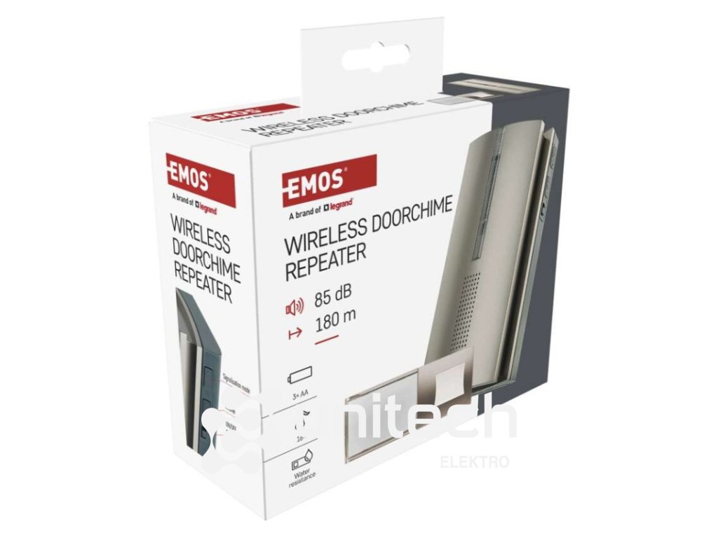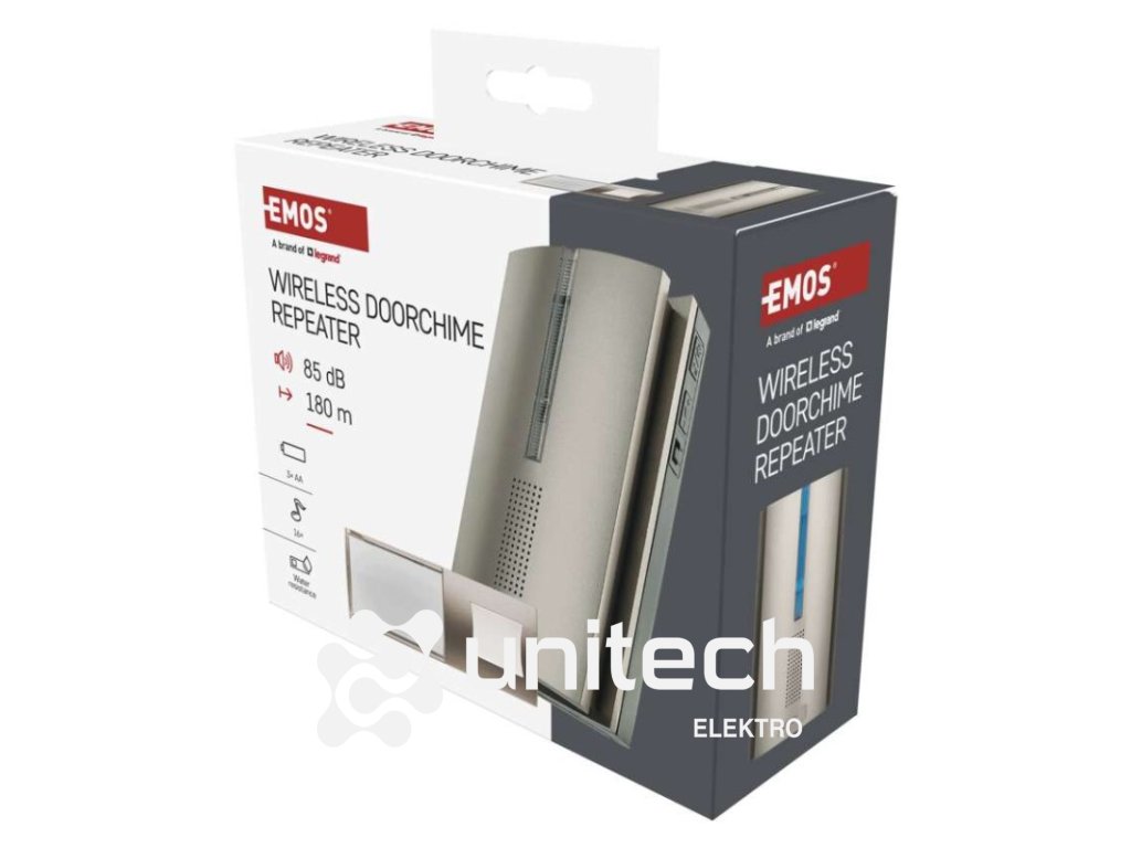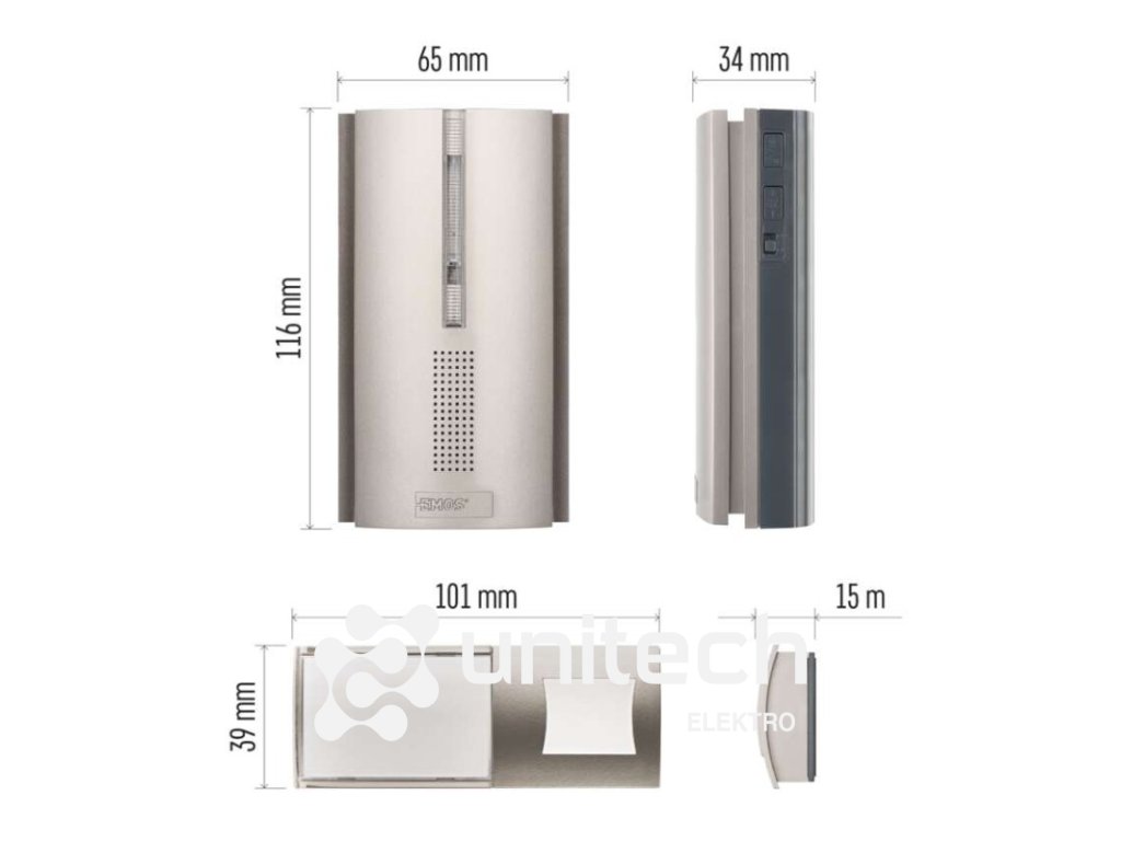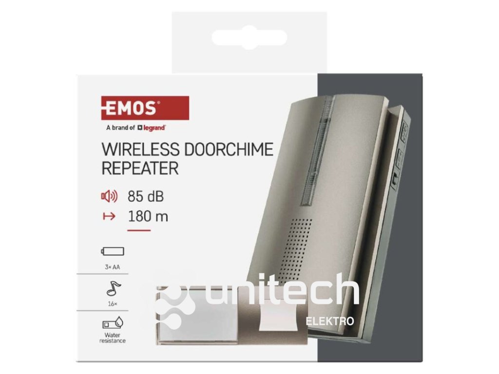 ďalšie funkcie: –|dosah tlačidla: 180 m|farba: strieborná|hlasová komunikácia: nie|inštalačný materiál: –|jazyky aplikácie: –|kompatibilita: –|maximálna hlasitosť zvonenia: 85 dB|možnosť pridať ďalšie tlačidlo: áno, max. 8|napájanie hlavnej jednotky: 3× 1,5 V AA (nie sú súčasťou balenia)|napájanie tlačidla: 1× 3 V CR2032 (súčasťou balenia)|notifikácie do mobilnej aplikácie: nie|optická signalizácia na tlačidle: áno|optická signalizácia na zvončeku: áno|ovládanie hlasovými asistentmi: nie|počet melódií: 16|počet prijímačov v balení: 1 ks|počet tlačidiel v balení: 1 ks|podporované OS: –|predajný obal: 1 ks, blister|prenosová frekvencia: 433 MHz|prídavné (náhradné) tlačidlo: P5760T|protokol: –|rada: –|regulácia hlasitosti: áno, 5 úrovní|rozmer tlačidla: 15 × 101 × 39 mm|rozmer zvončeka: 34 × 65 × 116 mm|špeciálne funkcie: funkcia repeater - umožňuje predĺžiť dosah tlačidla o niekoľko stoviek metrov navyše.|spôsob párovania: automatické párovanie – self-learning|spôsob prenosu: bezdrôtový zvonček|vodeodolné tlačidlo: IP44Dodatočné parametre