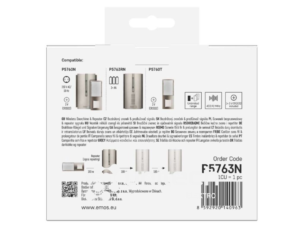 Domový bezdrôtový zvonček P5763N na 3× AA, možnosť predĺženia signálu