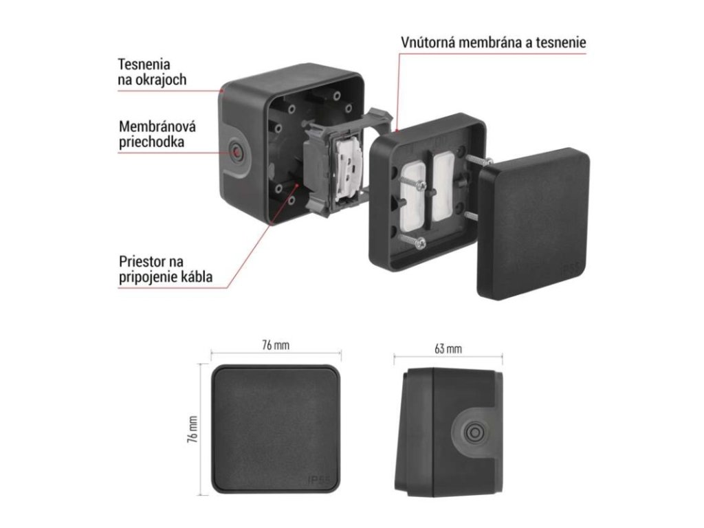 design: Cyklone|farba: sivá|krytie: IP55|napätie: 250 V~|podsvietenie: nie|predajný obal: 1 ks|prevedenie: 1 tlač. vodeodolný|produkt: ovládač zapínací (1/0)|prúd: 6 A|spôsob montáže: na stenu|typ pripojenia: automatická svorka|značka: DEBFLEXDodatočné parametre