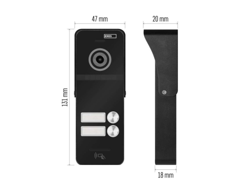antivandal prevedenie kamerovej jednotky: áno|aplikácia pre vzdialenú správu: bez aplikácie|farebné snímanie: áno|funkcia zabezpečenia: detekcia pohybu s funkciou alarmu|inštalácia: povrchová|krytie: IP44|napájanie: z monitora|ovládanie: videotelefón|ovládanie dverného zámku: áno|počet tlačidiel kamerovej jednotky: 2|počet vodičov (monitor/zámok/napájenie): 2× 4/2/0|požadovaná kabeláž: FTP alebo SYKFY 5 × 2 × 0,5|predajný obal: 1 ks, krabica|pripojenie: bez pripojenia|prísvit kamery: áno, do 150 cm|produkt: kamerová jednotka s RFID|rozmer kamerovej jednotky: 131 × 47 × 18 mm|snímací prvok kamery: 1/2,7" CMOS 2.0 MP, AHD + IR CUT|uhol záberu kamery: 160°|zloženie sady: –Dodatočné parametre