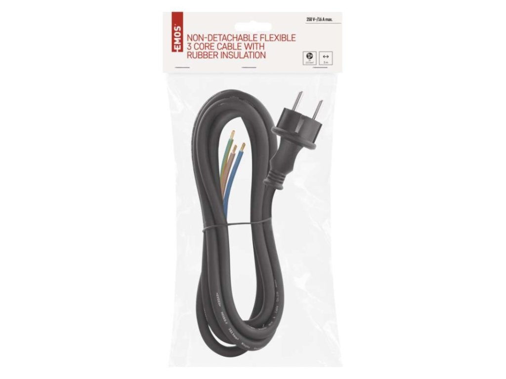 dĺžka: 3 m|farba: čierna|predajný obal: 1 ks, záves|prierez vodiča: 3× 2,5 mm²|typ: SY-11|typ izolácie: guma|vodič: H05RR-F|vypínač: nieDodatočné parametre