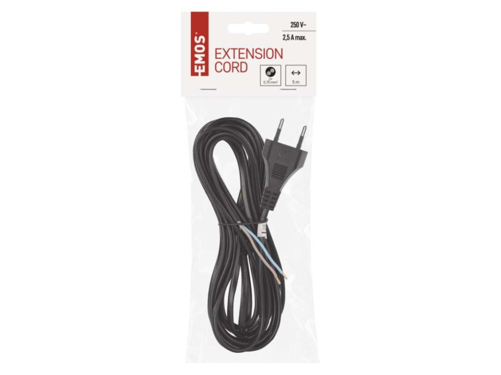 dĺžka: 5 m|farba: čierna|predajný obal: 1 ks, záves|prierez vodiča: 2× 0,75 mm²|typ: KF-H1 (HY020-F)|typ izolácie: PVC|vodič: H03VVH2-F|vypínač: nieDodatočné parametre