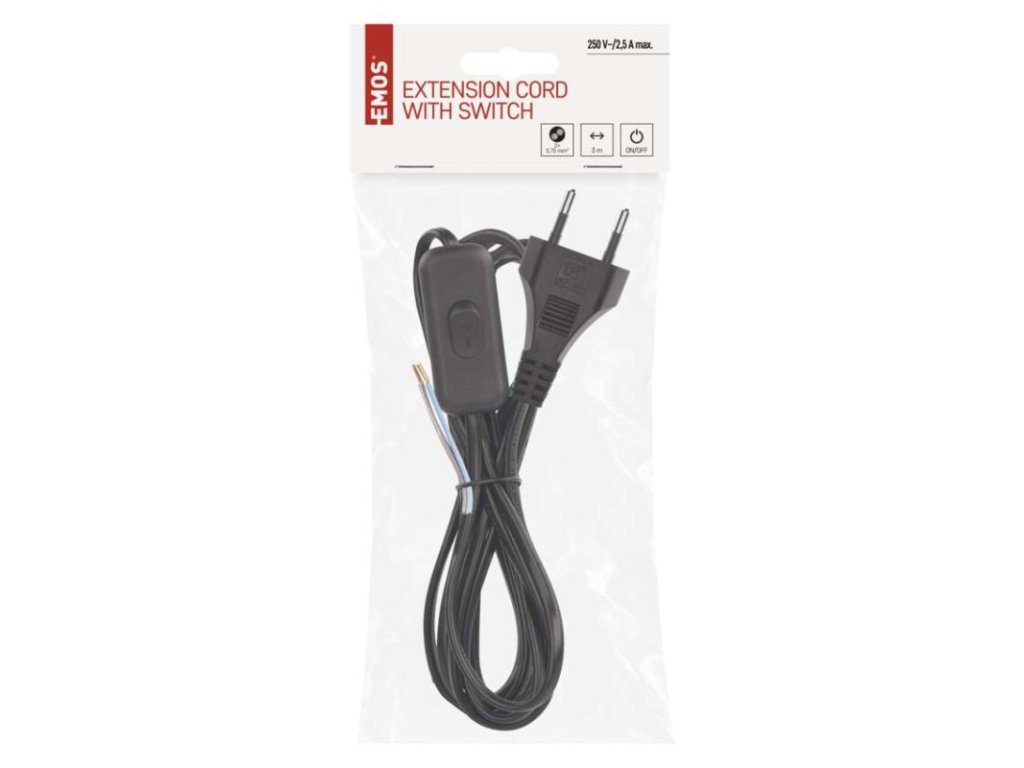 dĺžka: 3 m|farba: čierna|predajný obal: 1 ks, záves|prierez vodiča: 2× 0,75 mm²|typ: KF-H1/S051E4|typ izolácie: PVC|vodič: H03VVH2-F|vypínač: áno (50 cm od voľného konca)Dodatočné parametre