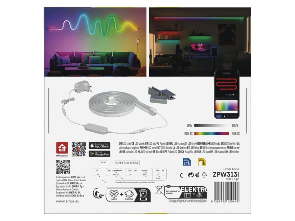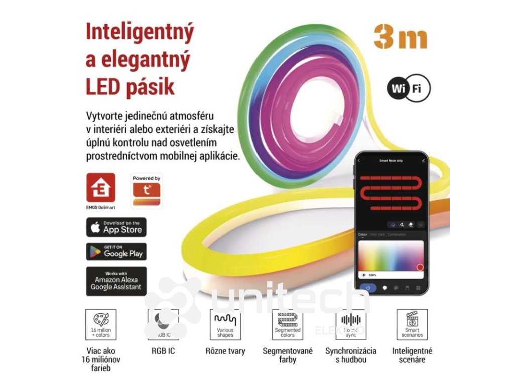 dĺžka: 3 000 mm|dĺžka prívodu: 1,6 m|energetická trieda dodávaného svetelného zdroja: –|farba svetla: RGBIC|farba tela: biela|jazyky aplikácie: EN, CZ, SK, PL, DE, HU, SI, FR, + 60 ďalších jazykov|kategória: –|kompatibilita: EMOS GoSmart, Tuya, Lidl, Smartlife|krytie: IP20|materiál difúzora: silikón|materiál tela: silikón|maximálny počet segmentov: –|nastavenia farieb (RGB): áno|nastavenie teploty farieb: nie|notifikácie do mobilnej aplikácie: áno|ovládanie hlasovými asistentmi: áno (Amazon, Alexa, Google Assistant)|počet segmentov: –|počet spínacích cyklov: –|podporované OS: iOS, Android|predajný obal: 1 ks, krabička|prenosová frekvencia: 2,4 GHz (IEEE 802.11b/g/n)|príkon: 23 W|protokol: WIFI + BLE|rada: GoSmart|RGB digital: áno|šírka: 18 mm|stmievanie: áno|svetelná účinnosť: –|svetelný tok: –|svetelný zdroj je súčasťou balenia: –|technológia: LED|teplota chromatičnosti: –|tvar: –|vstupné napätie: 220–240 V~/50 Hz|výška: –|záručná doba: 2 roky|životnosť: 20 000 hodínDodatočné parametre