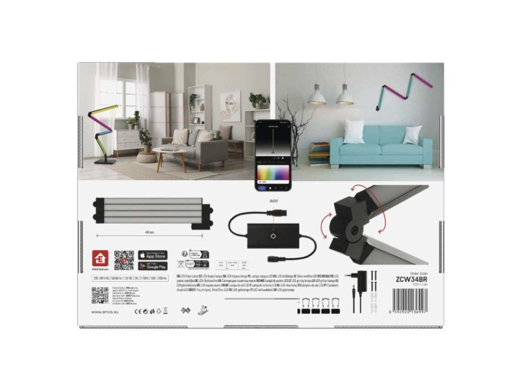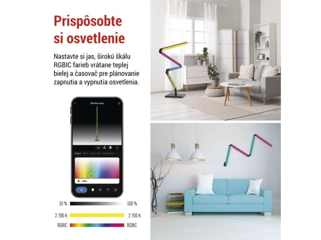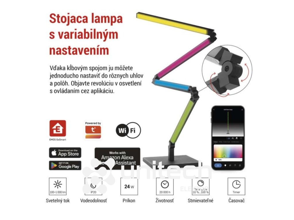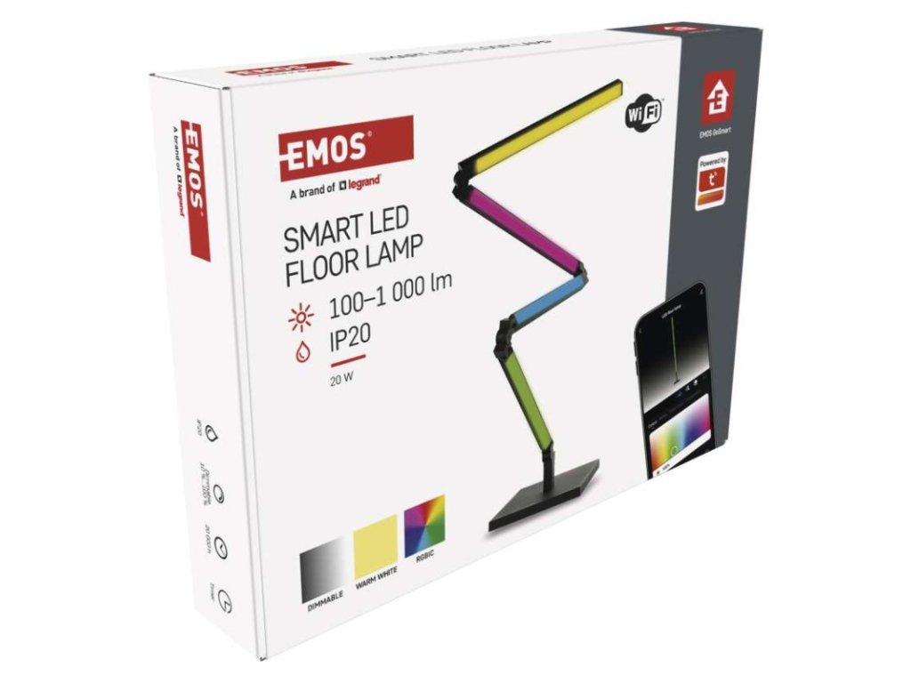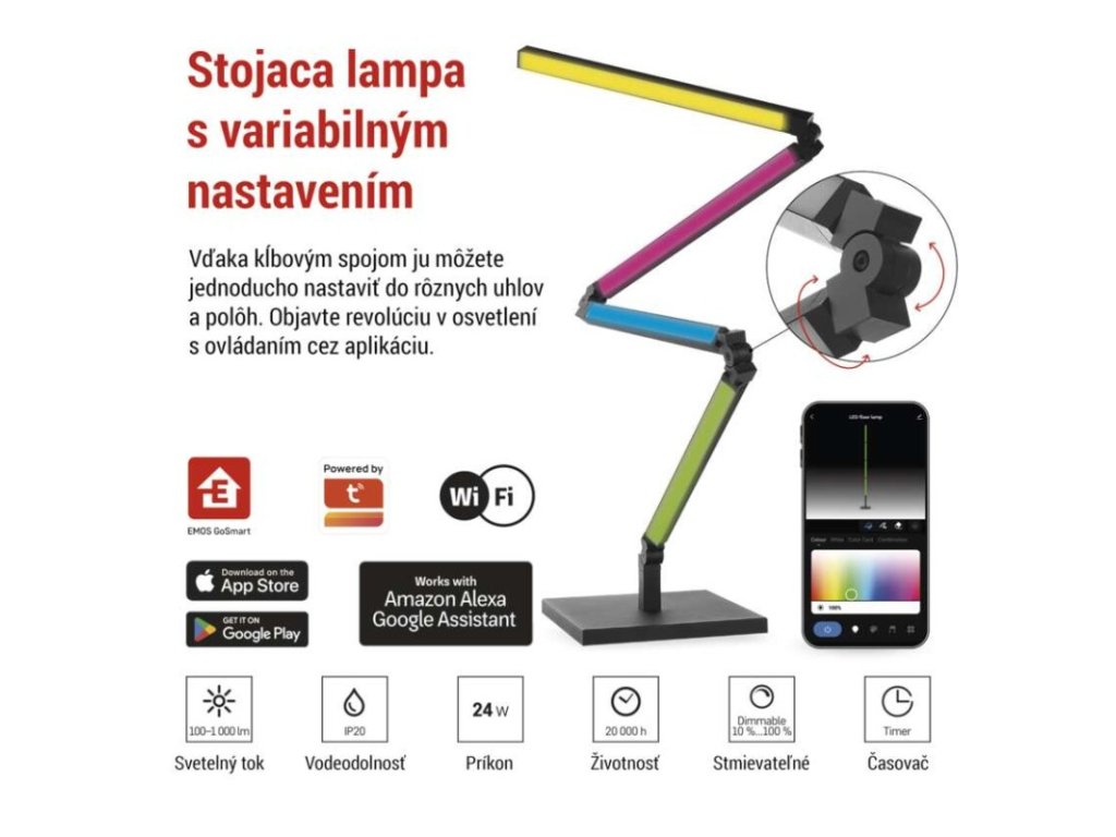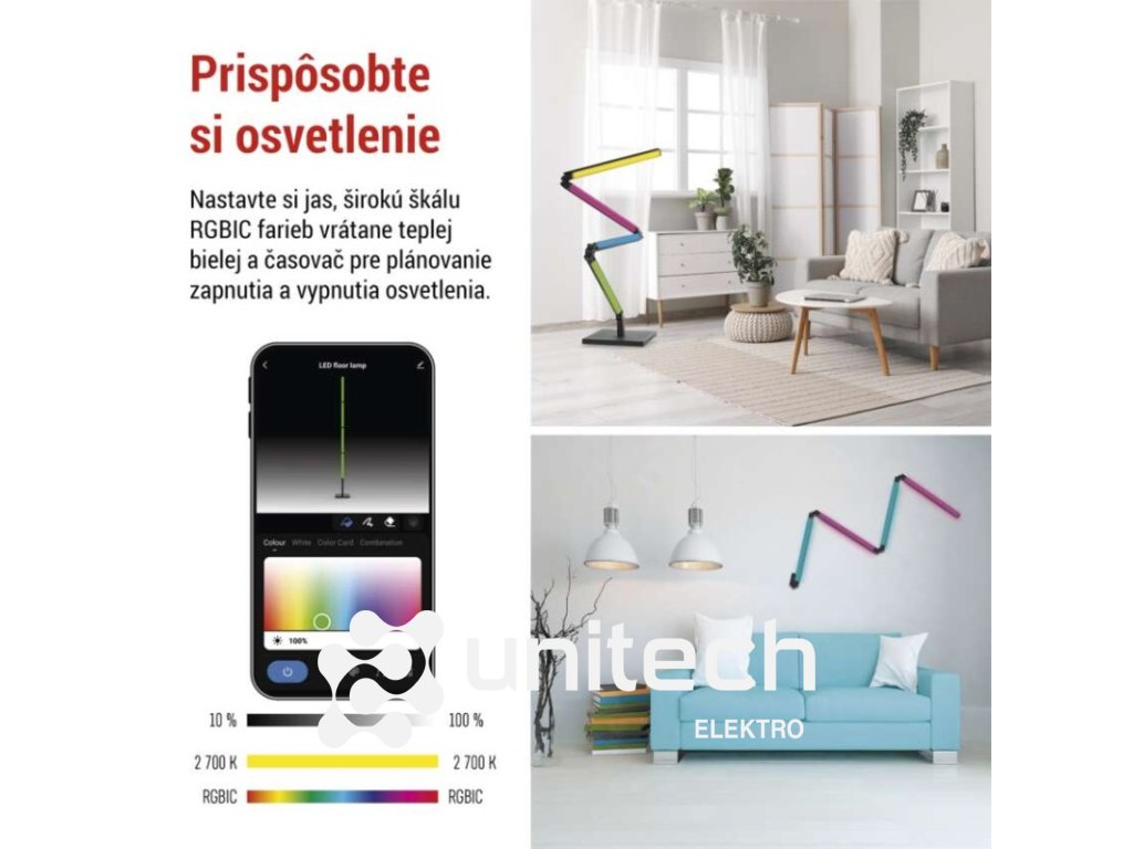 dĺžka: 24 mm|dĺžka prívodu: 1,5 m|energetická trieda dodávaného svetelného zdroja: G|farba svetla: teplá biela, RGB|farba tela: čierna|jazyky aplikácie: EN, CZ, SK, PL, DE, HU, SI, FR, + 60 ďalších jazykov|kategória: EXCLUSIVE|kompatibilita: EMOS GoSmart, Tuya, Lidl, Smartlife|krytie: IP20|materiál difúzora: plast (PC)|materiál tela: hliník|maximálny počet segmentov: 4+0+0|nastavenia farieb (RGB): áno|nastavenie teploty farieb: nie|notifikácie do mobilnej aplikácie: áno|ovládanie hlasovými asistentmi: áno (Amazon, Alexa, Google Assistant)|počet segmentov: 4+0+0|počet spínacích cyklov: –|podporované OS: iOS, Android|predajný obal: 1 ks, krabička|prenosová frekvencia: 2,4 GHz (IEEE 802.11b/g/n)|príkon: 24 W|protokol: WIFI + BLE|rada: GoSmart|RGB digital: áno|šírka: 24 mm|stmievanie: áno|svetelná účinnosť: 50 lm/W|svetelný tok: 1 000 lm|svetelný zdroj je súčasťou balenia: #|technológia: LED|teplota chromatičnosti: 2 700 K|tvar: –|vstupné napätie: 200–240 V~/50 Hz|výška: 1 750 mm|záručná doba: 3 roky|životnosť: 20 000 hodínDodatočné parametre
