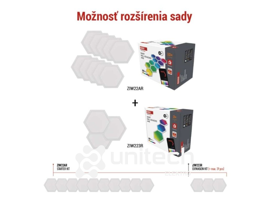GoSmart LED svietidlo Hexagon, rozširujúca sada, 3 časti, 1,8W, RGBIC stmievateľné, WiFi
