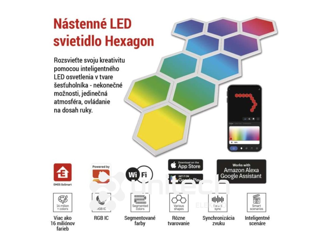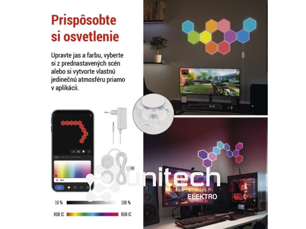 GoSmart LED svietidlo Hexagon, štartovací sada, 10 dielov, 19 W, RGBIC stmievateľné, WiFi