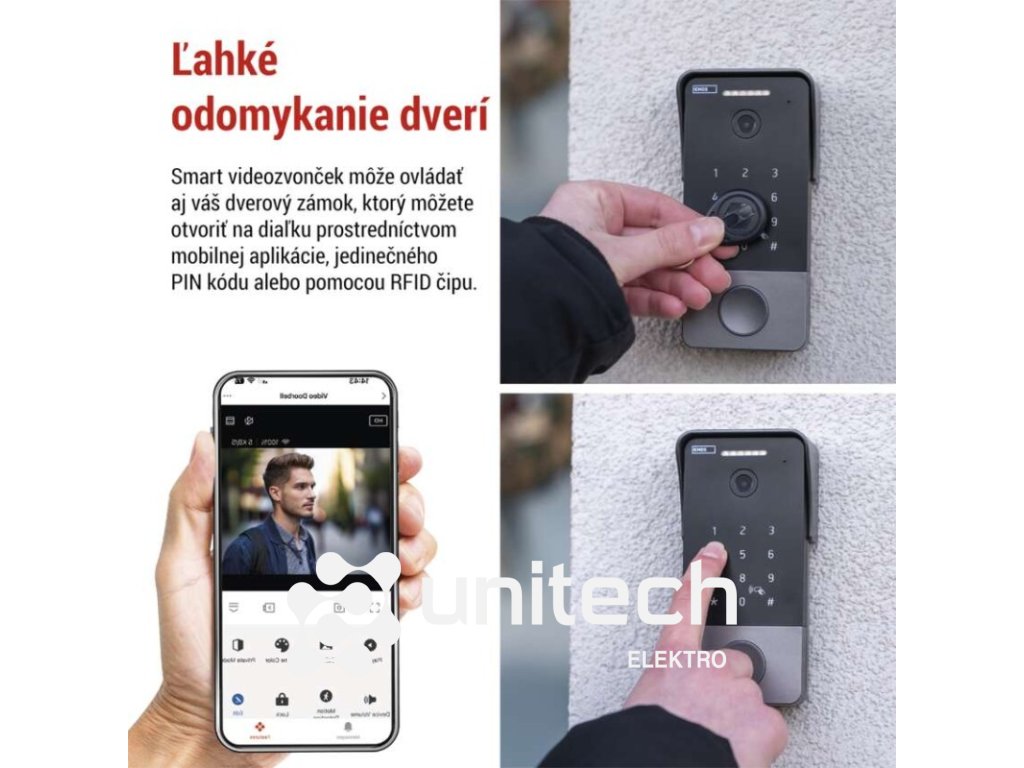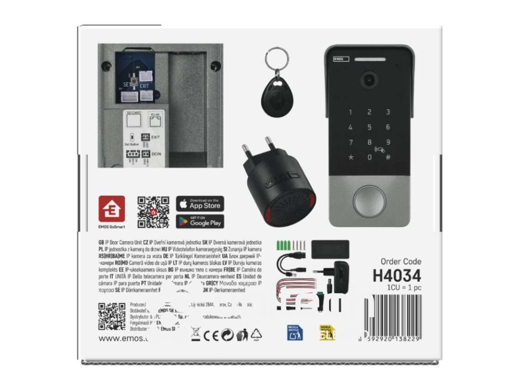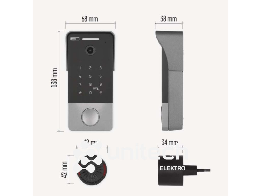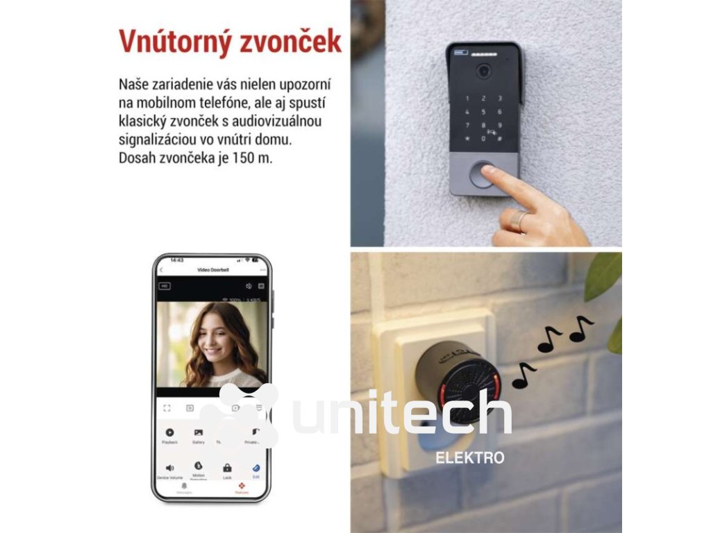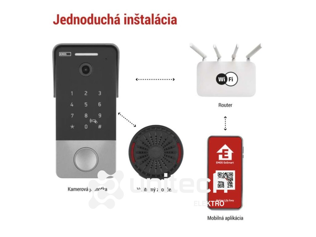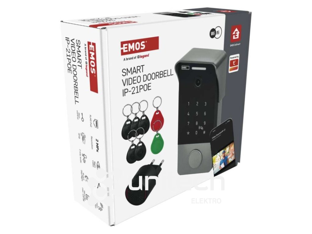 antivandal prevedenie kamerovej jednotky: áno|automatické ukladanie obrázkov: áno|ďalšie funkcie: –|detekcia pohybu: áno|dodatočný vnútorný zvonček: áno|farba: sivá|funkcia WebRTC: áno|hlasová komunikácia: obojsmerný|IR CUT: áno|jazyky aplikácie: EN, CZ, SK, PL, DE, HU, SI, FR, + 60 ďalších jazykov|kompatibilita: EMOS GoSmart, TUYA, LIDL, Smartlife, otvorený systém|krytie: IP44|maximálny dosvit nočného videnie: 10 metrov|montáž: na stenu|možnosť pripojenia ďalších kamier: nie|napájanie kamerovej jednotky: 12-48V DC / PoE|napájanie pre vnútorný zvonček: 230V AC|nočné videnie: áno|notifikácie do mobilnej aplikácie: áno|obsah balenia: 1× video zvonček, 1× vnútorný gong, 1× napájací adaptér, 1× redukcia napájania, 1× poe injektor, 1× montážna sada, 7× RFID kľúčenka|ochrana proti odcudzeniu: áno|odporúčané zapojenie: UTP / FTP kábel (RJ45)|ovládanie hlasovými asistentmi: –|ovládanie pojazdu brány: nie|ovládanie zámku: áno|počet melódií vnútorného zvona: 10|počet tlačidiel kamerovej jednotky: 1|podporované OS: Android, iOS|predajný obal: 1 ks, krabica|prenosová frekvencia: 2,4 GHz WIFI (IEEE802.11b/g/n)|protokol: Wi-Fi|regulácia hlasitosti: áno|rozlíšenie kamery: 1 920 × 1 080|rozmer kamerovej jednotky: 140 × 69 × 38 mm|siréna: nie|snímací prvok kamery: 1/2,9" CMOS GC2053|typ produktu: video zvonček|uhol záberu kamery: 160°|ukladanie na cloud: áno|ukladanie na kartu SD: áno|záručná doba: 2 roky|zdroj súčasťou balenia: ánoDodatočné parametre