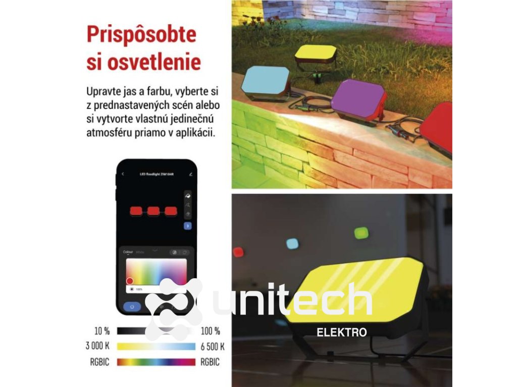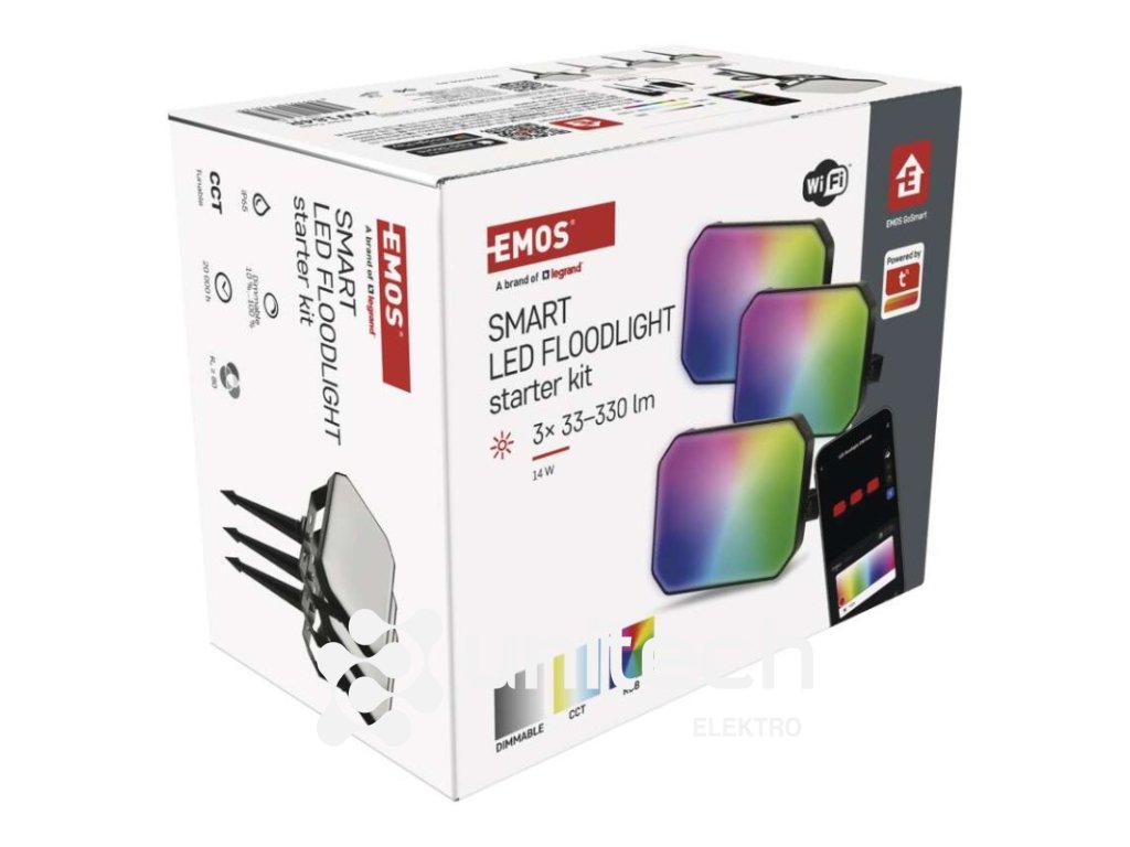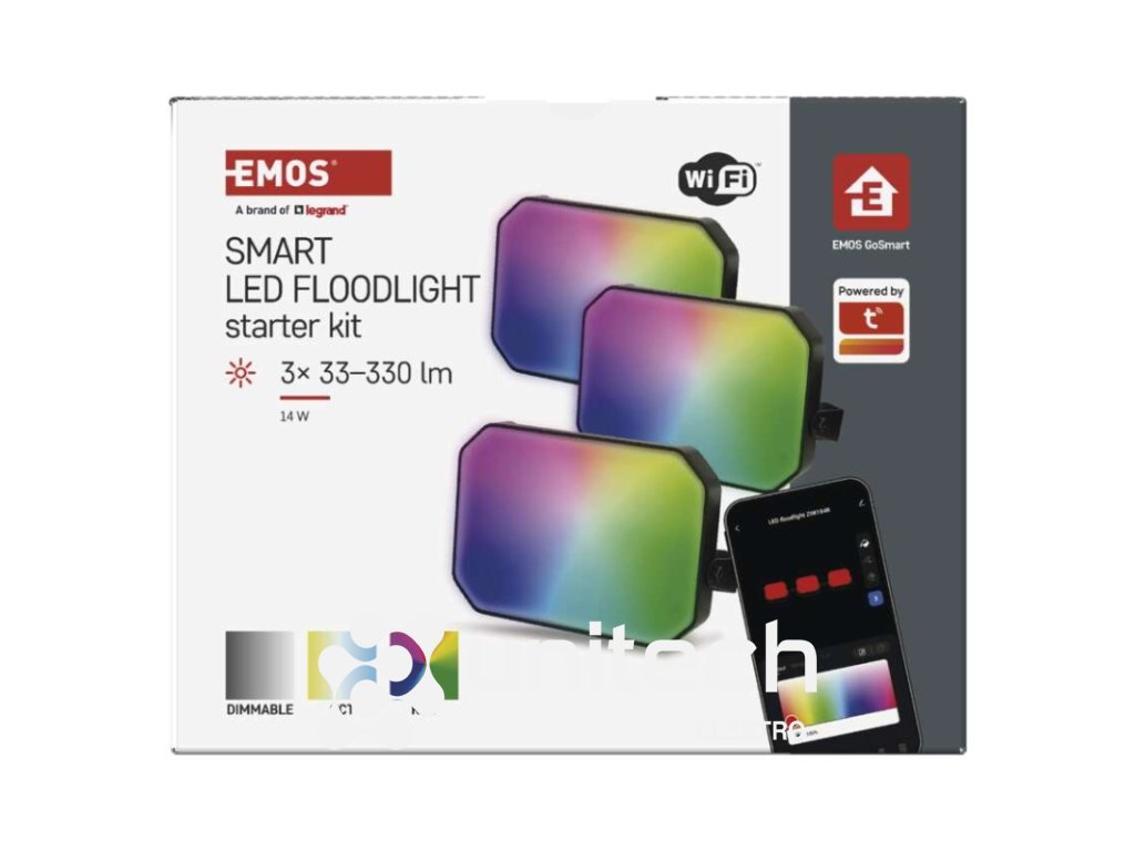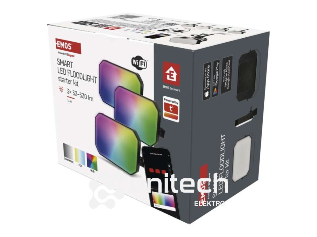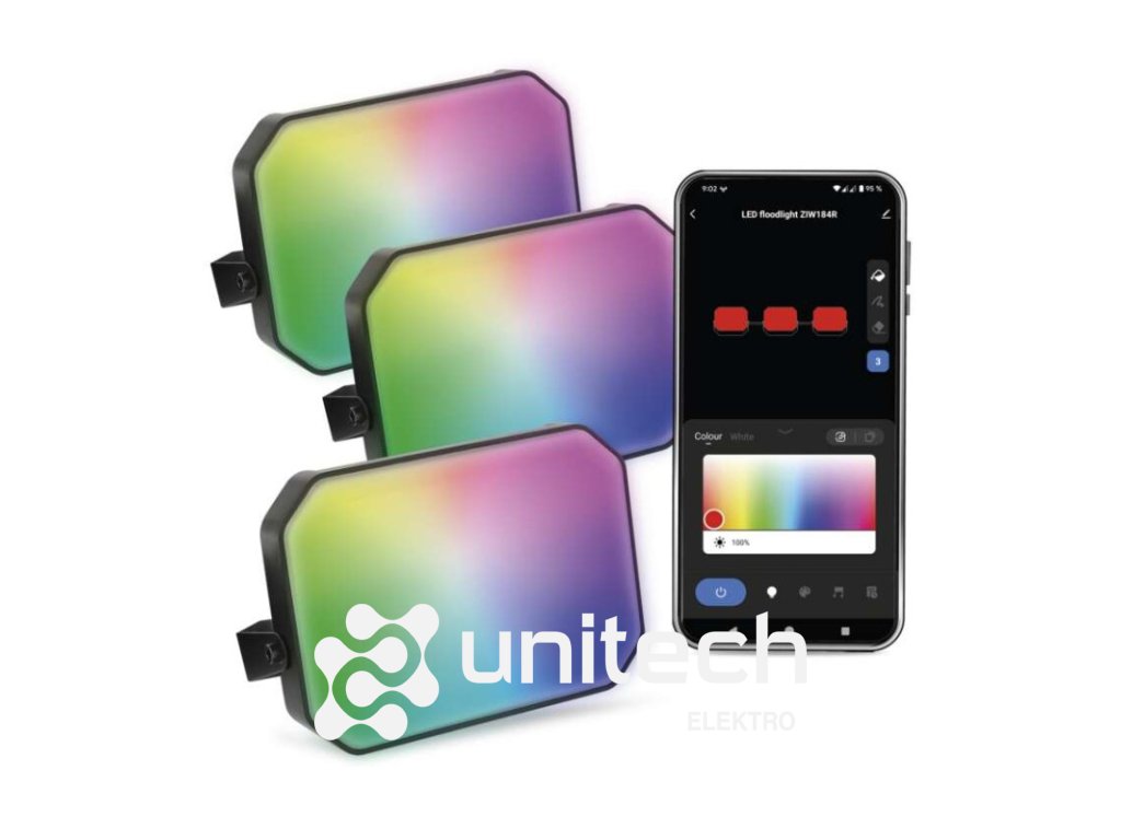 GoSmart vonkajší LED reflektor, štartovacia sada, 3 diely, 14 W, RGBIC stmievateľný, WiFi