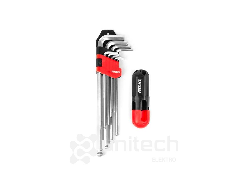 Obohaťte svoju dielňu o kvalitnú sadu HEX imbusových kľúčov s guličkou! Táto 9-dielna sada je mimoriadne dlhá a pevná, vyrobená z odolnej chromvanadiovej (CRV) ocele. Perfektný pre náročné úlohy na ťažko dostupných miestach, kde je rozhodujúca presnosť a pohodlie.