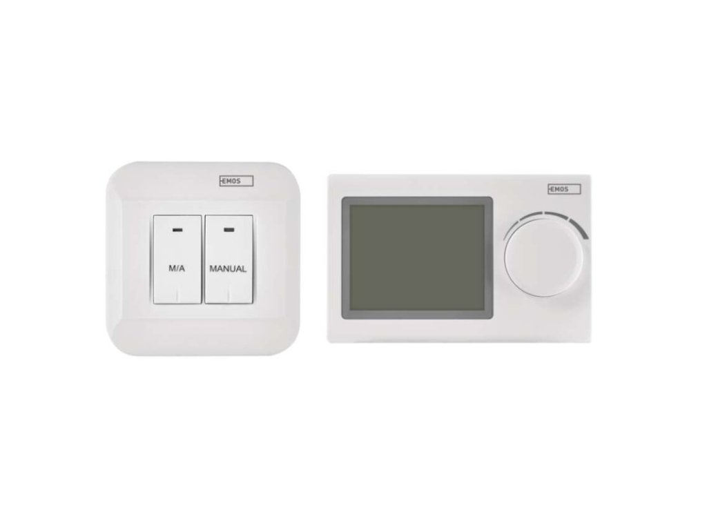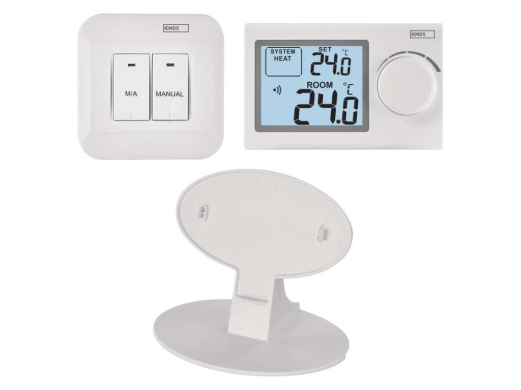 dĺžka kapilárneho čidla: neuvádza sa|dosah vo voľnom priestore: 100 m|druh regulácie: vykurovací a chladiaci systém|farba: biela|funkcia ON/OFF: áno|funkcia prázdniny: neuvádza sa|funkcia Set-back: neuvádza sa|kalibrácia teploty: áno|meranie teploty: 0 °C až 40 °C, rozlíšenie 0,1 °C|možnosť prepojenia s ďalšími detektormi: neuvádza sa|napájanie: neuvádza sa|napájanie brány: neuvádza sa|napájanie prijímača: 230 V AC|napájanie vysielača: 2× 1,5 V AAA (súčasťou balenia)|nastavenie teploty: 5 ° C až 35 ° C, po 0,5 ° C|nastaviteľný rozptyl teploty: ±0,2 °C|ochrana proti zamrznutiu: áno|počet programov: užívateľsky nastaviteľná teplota|podsvietený displej: áno|pracovná frekvencia: 868 MHz|predajný obal: 1 ks, krabička|protokol: –|rozmer: neuvádza sa|rozmer brány: neuvádza sa|rozmer prijímača: 26 × 86 × 86 mm|rozmer vysielača: 28 × 120 × 77 mm|spínaná záťaž: 16 A odporovo, 4 A induktívne|spínanie: 230 V AC alebo beznapäťové|súčasť balenia: neuvádza sa|typ nastavenia teploty: manuálne|typ ovládania: manuálny elektronický izbový termostat|typ termostatu: bezdrôtovýDodatočné parametre