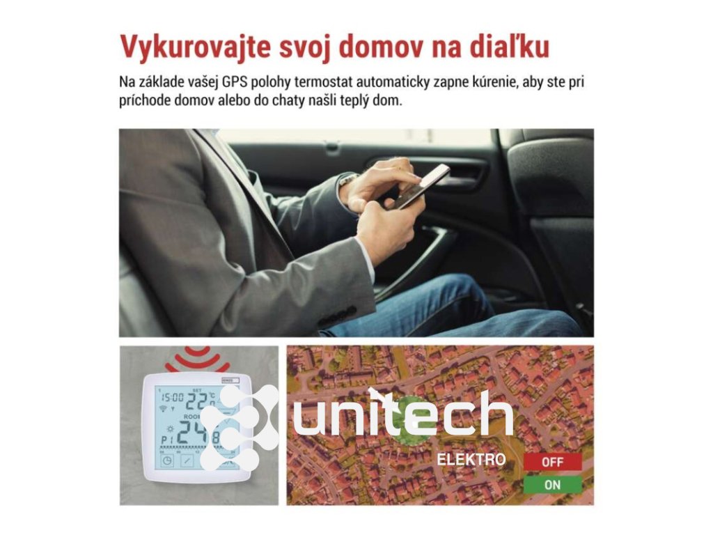 | typ ovládania: | programovateľný elektronický izbový termostat, možnosť ovládania cez mobil (iOS, Android) |