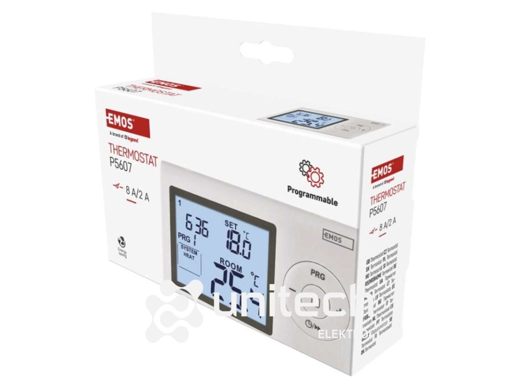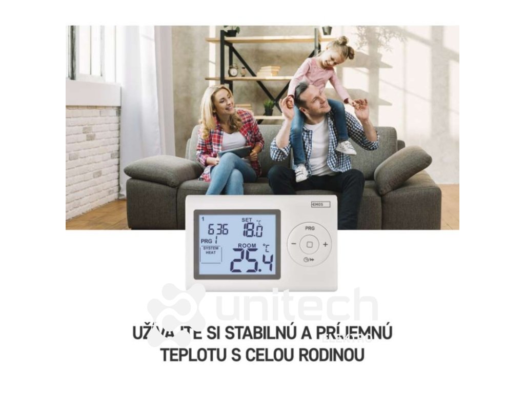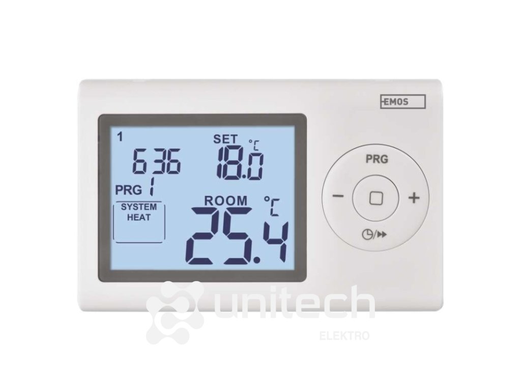 dĺžka kapilárneho čidla: neuvádza sa|dosah vo voľnom priestore: neuvádza sa|druh regulácie: vykurovací a chladiaci systém|farba: biela|funkcia ON/OFF: nie|funkcia prázdniny: nie|funkcia Set-back: nie|kalibrácia teploty: áno|meranie teploty: 0 °C až 40 °C, rozlíšenie 0,1 °C|možnosť prepojenia s ďalšími detektormi: neuvádza sa|napájanie: 2× 1,5 V AAA (súčasťou balenia)|napájanie brány: neuvádza sa|napájanie prijímača: neuvádza sa|napájanie vysielača: neuvádza sa|nastavenie teploty: 5 ° C až 35 ° C, po 0,5 ° C|nastaviteľný rozptyl teploty: 0,2 °C až 2 °C, po 0,1 °C|ochrana proti zamrznutiu: áno|počet programov: 1 užívateľsky nastaviteľný program alebo užívateľsky nastaviteľná teplota (6 × za deň)|podsvietený displej: áno|pracovná frekvencia: neuvádza sa|predajný obal: 1 ks, krabička|protokol: –|rozmer: 26 × 120 × 78 mm|rozmer brány: neuvádza sa|rozmer prijímača: neuvádza sa|rozmer vysielača: neuvádza sa|spínaná záťaž: 8 A odporovo, 2 A induktívne|spínanie: 230 V AC alebo beznapäťové|súčasť balenia: neuvádza sa|typ nastavenia teploty: 6 teplotných zmien denne|typ ovládania: programovateľný elektronický izbový termostat|typ termostatu: drôtovýDodatočné parametre