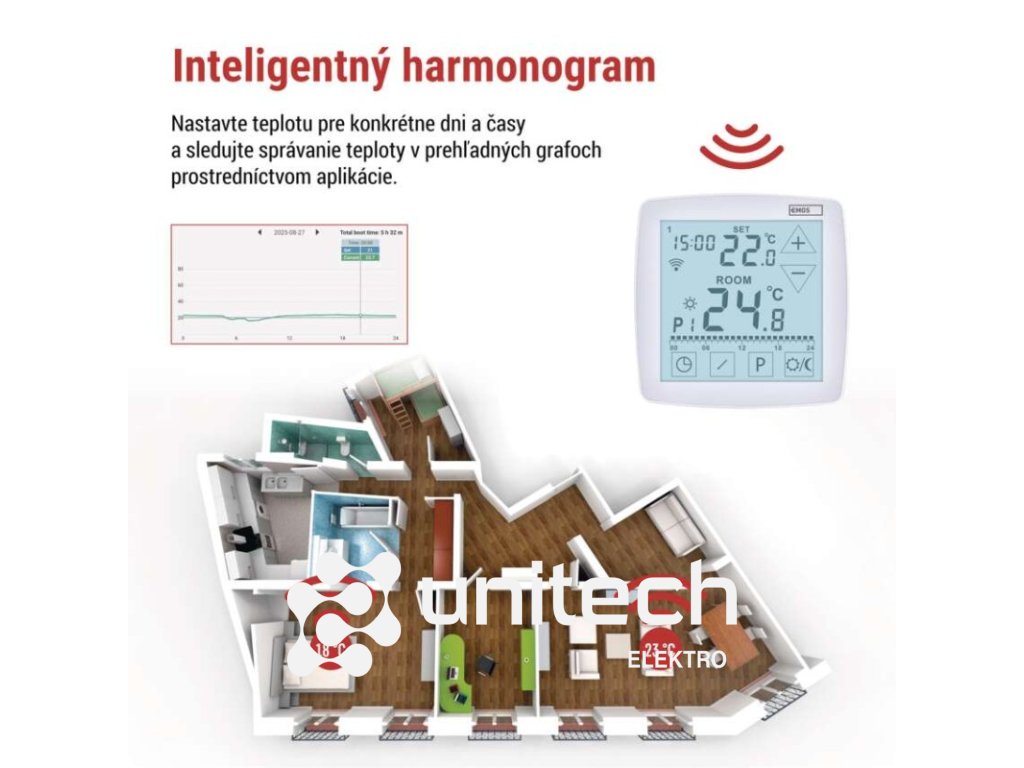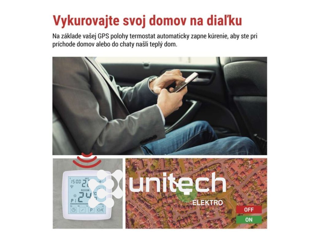 | typ ovládania: | programovateľný elektronický izbový termostat, možnosť ovládania cez mobil (iOS, Android) |