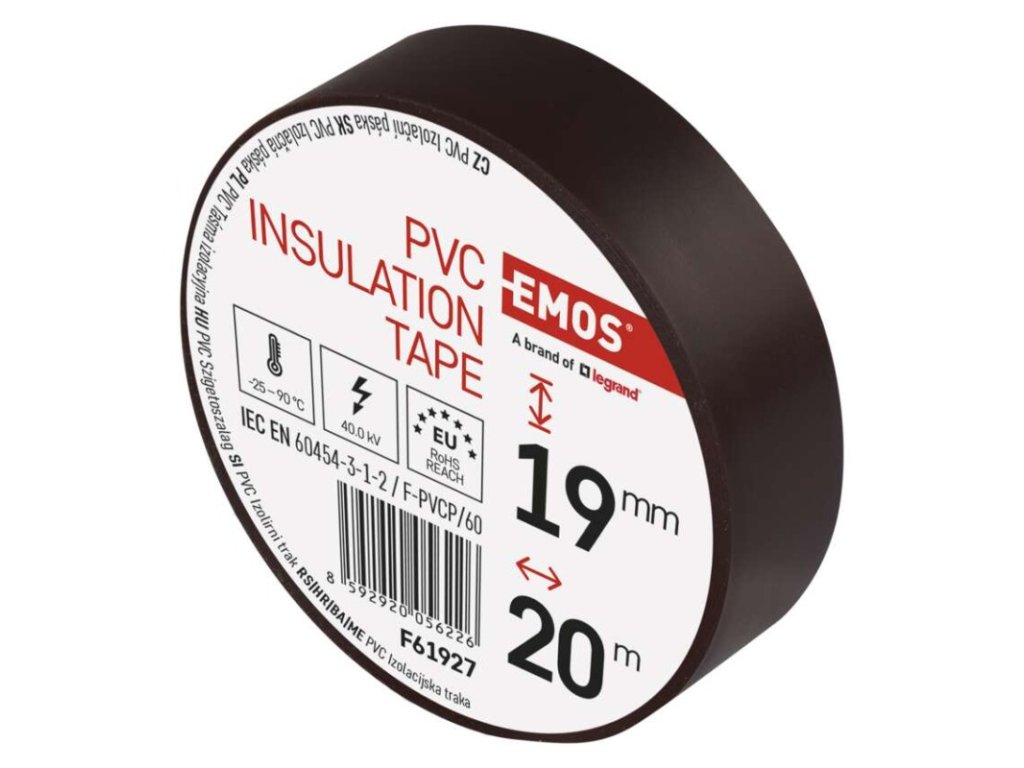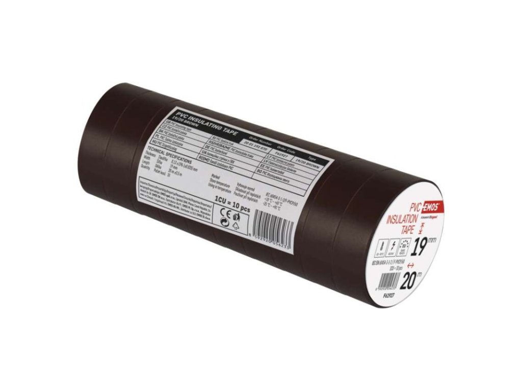 dĺžka návinu: 20 m|elektrická pevnosť minimálne: 40 kV/mm|elektrická pevnosť po vlhku minimálne: 35 kV/mm|farba: hnedá|hrúbka pásky: 0,13 mm|integrovaná textilná sieťka: nie|materiál lepidla: kaučuk|odolné UV: áno|odporúčaná skladovacia teplota: 10–45 °C|pevnosť v ťahu: 150 N/10 mm|potlač: bez potlače|predajný obal: 10 ks, fólia|predĺženie minimálne: 125 %|predpokladané použitie: izolácia káblov|priľnavosť k oceli minimálne: 1,8 N/10 mm|priľnavosť k podkladu: 1,5 N/10 mm|rozmer: 70 × 20 mm|rozsah inštalačných teplôt: -25–90 °C|samozhášavé: nie|šírka pásky: 19 mm|skúška plameňom: <1 sec|spĺňa smernicu REACH: áno|spĺňa smernicu ROHS: áno|typ pásky: PVC|vodotesný spoj: áno|vyhovuje norme: ČSN EN 60454-3-1-2/F-PVC/60|vytvára tlakotesný spoj: nieDodatočné parametre