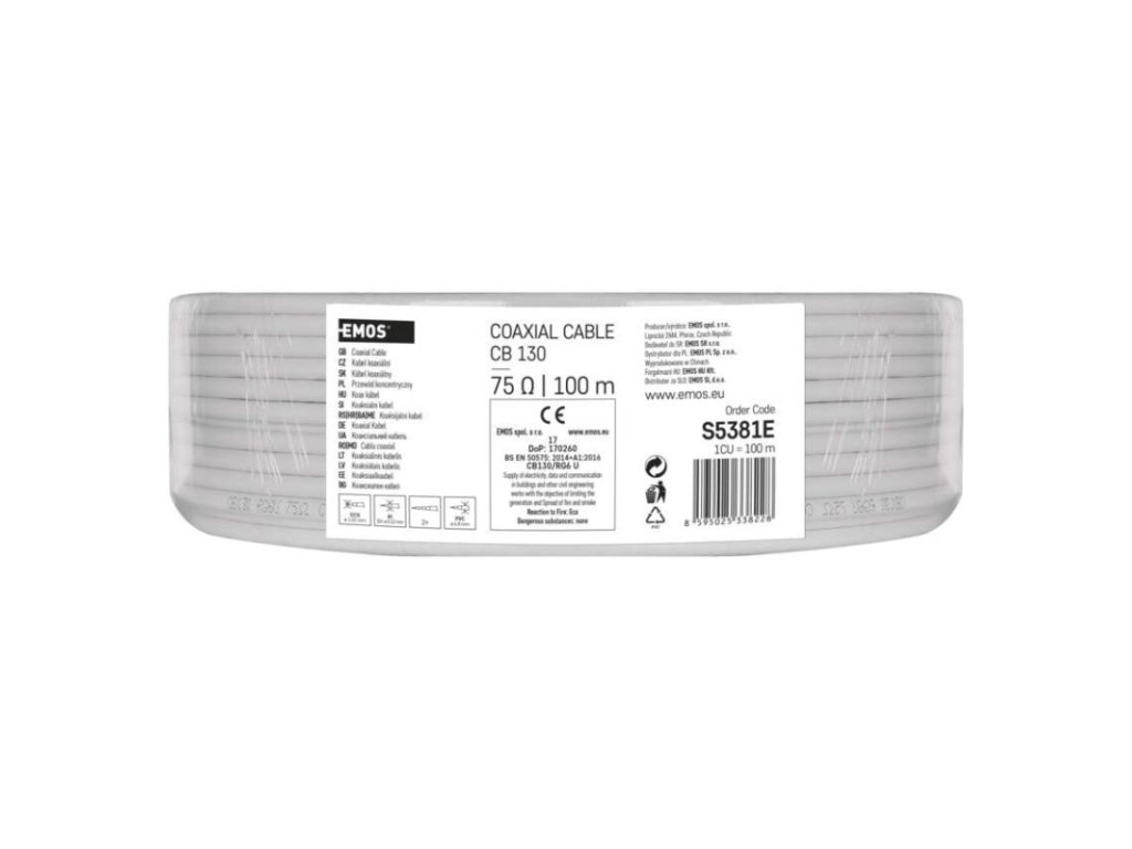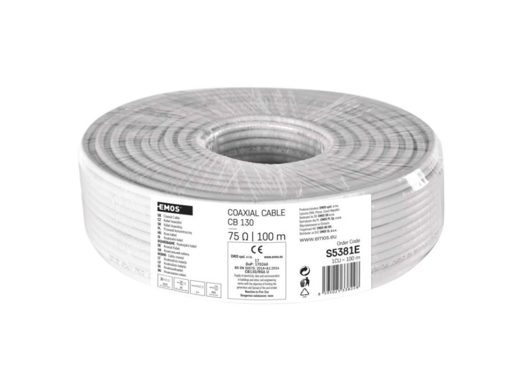 APE = vzduchové dielektrikum: nie|činiteľ skrátenia: 0,84|dielektrikum typ, priemer: FPE 4,8 mm|farba izolácie napájacích vodičov: neuvádza sa|farba plášťa kábla: biela|FPE = penové dielektrikum: áno|hmotnosť (kg/km): 40,5|impedancia: 75 Ohm|izolácia napájacích vodičov: neuvádza sa|izolačný odpor medzi jadrami pri 20 °C (MOhm/ km): 500|kapacita (pF/ m): 55|konštrukcia napájacích vodičov: neuvádza sa|materiál plášťa kábla: PVC|materiál tienenia: hliník (Al)|materiál vnútorného vodiča: meďou plátovaný oceľový drôt (CCS)|max.rovn.odpor pri 20 °C (Ohm/km) - vnútorné jadro: 25,7|max.rovn.odpor pri 20 °C, (Ohm/km) - vonkajšie jadro: 45,9|max. útlm pri 20 °C (dB/100m) 1 000 MHz: 22,5|max. útlm pri 20 °C (dB/100m) 100 MHz: 7,4|max. útlm pri 20 °C (dB/100m) 10 MHz: 2,3|max. útlm pri 20 °C (dB/100m) 2 000 MHz: 34|max. útlm pri 20 °C (dB/100m) 450 MHz: 15,5|max. útlm pri 20 °C (dB/100m) 650 MHz: 18,2|max. útlm pri 20 °C (dB/100m) 860 MHz: 20,8|min. polomer ohybu jednorazový/ násobný: 30/60 mm|min. útlm odrazu pri 20 °C (dB) 10–300 MHz: 25|min. útlm odrazu pri 20 °C (dB) 300–600 MHz: 23|min. útlm odrazu pri 20 °C (dB) 600–900 MHz: 20|min. útlm tienenia (dB) 10 ~ 800 MHz: 75|montážna teplota: +5 °C až +60 °C|nebezpečné látky: žiadne|odolné UV: nie|odporúčané typy konektorov - F lisovacie: *K7220|odporúčané typy konektorov - F skrutkovacie: *K7331|PE = polyetylénové dielektrikum: nie|PES = vrstva fólie: nie|počet drôtikov tienenia: 32× 0,12 mm|počet tienení: 2|pokrytie tienenia: 28 %|predajný obal: 100 m, PVC fólia|priemer plášťa kábla: 6,8 mm|priemer tienenia: 32× 0,12 mm²|priemer vnútorného vodiča: 1,02 mm|prierez napájacích vodičov: neuvádza sa|skladovacia teplota: -20 °C až +75 °C|spôsob balenia - dĺžka: 100 m|spôsob balenia - ozn. metráží: áno|spôsob balenia - typ cievky: PVC fólia|tienenie I. fólie: 1× Al/PES|tienenie II. fólie: nie je|trieda reakcie na oheň: Eca|typ koaxiálneho kábla: CB130|vhodné pre vonkajšie použitie: nie|zamýšľané použitie: vnútorné rozvody, univerzálny kábel|záručná doba: 2 rokyDodatočné parametre