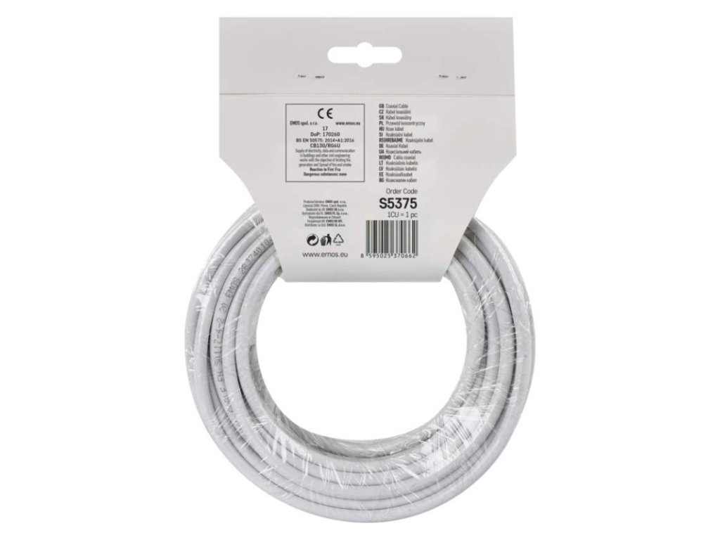 APE = vzduchové dielektrikum: nie|činiteľ skrátenia: 0,84|dielektrikum typ, priemer: FPE 4,8 mm|farba izolácie napájacích vodičov: neuvádza sa|farba plášťa kábla: biela|FPE = penové dielektrikum: áno|hmotnosť (kg/km): 40,5|impedancia: 75 Ohm|izolácia napájacích vodičov: neuvádza sa|izolačný odpor medzi jadrami pri 20 °C (MOhm/ km): 500|kapacita (pF/ m): 55|konštrukcia napájacích vodičov: neuvádza sa|materiál plášťa kábla: PVC|materiál tienenia: hliník (Al)|materiál vnútorného vodiča: meďou plátovaný oceľový drôt (CCS)|max.rovn.odpor pri 20 °C (Ohm/km) - vnútorné jadro: 25,7|max.rovn.odpor pri 20 °C, (Ohm/km) - vonkajšie jadro: 45,9|max. útlm pri 20 °C (dB/100m) 1 000 MHz: 22,5|max. útlm pri 20 °C (dB/100m) 100 MHz: 7,4|max. útlm pri 20 °C (dB/100m) 10 MHz: 2,3|max. útlm pri 20 °C (dB/100m) 2 000 MHz: 34|max. útlm pri 20 °C (dB/100m) 450 MHz: 15,5|max. útlm pri 20 °C (dB/100m) 650 MHz: 18,2|max. útlm pri 20 °C (dB/100m) 860 MHz: 20,8|min. polomer ohybu jednorazový/ násobný: 30/60 mm|min. útlm odrazu pri 20 °C (dB) 10–300 MHz: 25|min. útlm odrazu pri 20 °C (dB) 300–600 MHz: 23|min. útlm odrazu pri 20 °C (dB) 600–900 MHz: 20|min. útlm tienenia (dB) 10 ~ 800 MHz: 75|montážna teplota: +5 °C až +60 °C|nebezpečné látky: nepodlieha CPR|odolné UV: nie|odporúčané typy konektorov - F lisovacie: *K7220|odporúčané typy konektorov - F skrutkovacie: *K7331|PE = polyetylénové dielektrikum: nie|PES = vrstva fólie: nie|počet drôtikov tienenia: 32× 0,12 mm|počet tienení: 2|pokrytie tienenia: 28 %|predajný obal: 15 m, headercard|priemer plášťa kábla: 6,8 mm|priemer tienenia: 32× 0,12 mm²|priemer vnútorného vodiča: 1,02 mm|prierez napájacích vodičov: neuvádza sa|skladovacia teplota: -20 °C až +75 °C|spôsob balenia - dĺžka: 15 m|spôsob balenia - ozn. metráží: áno|spôsob balenia - typ cievky: PVC krabica|tienenie I. fólie: 1× Al/PES|tienenie II. fólie: nie je|trieda reakcie na oheň: nepodlieha CPR|typ koaxiálneho kábla: CB130|vhodné pre vonkajšie použitie: nie|zamýšľané použitie: vnútorné rozvody|záručná doba: 2 rokyDodatočné parametre