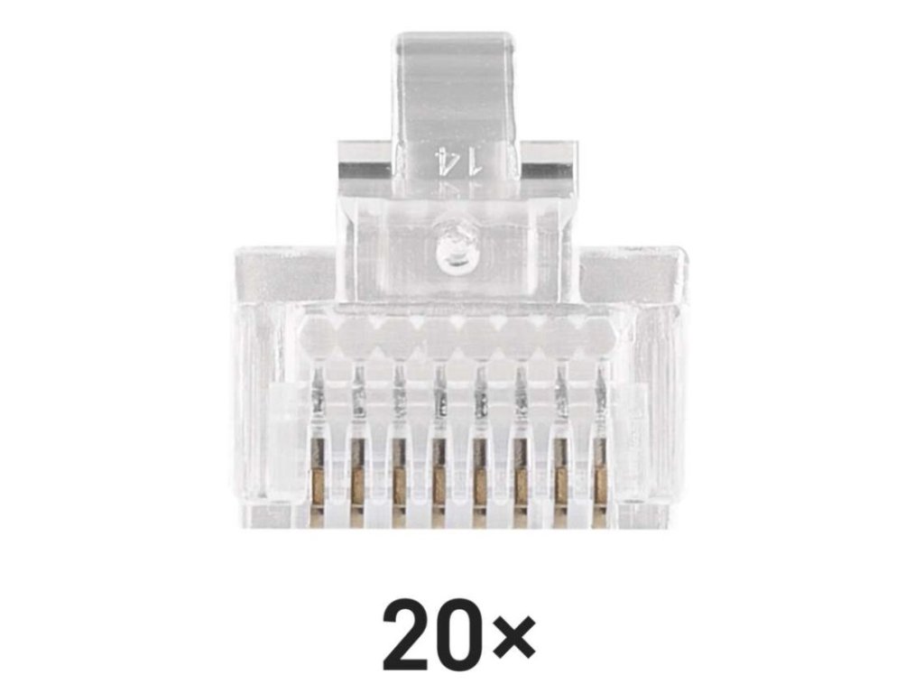 kategória: CAT5E|materiál konektorov: PE/50 µ zlata - 70 µ nikel|maximálna prevádzková vlhkosť: 93 %|min. životnosť: 1 000 cyklov zapojenie/odpojenie|počet konektorov: neuvádza sa|použitie: pevný drôt|predajný obal: 20 ks, PVC sáčok|prevádzková teplota: -10–60 °C|rozmer: 22 × 12 × 10 mm|skladovacia teplota: -40–70 °C|tienenie: nie|typ: konektor RJ45 8p8c|určené pre kábel: UTPDodatočné parametre