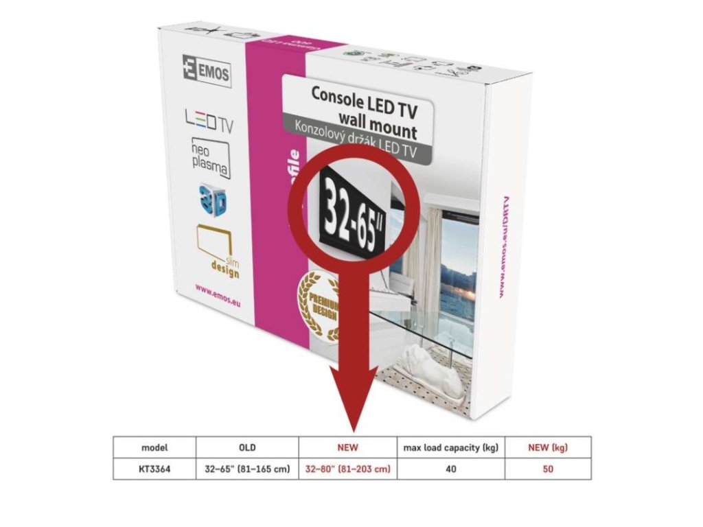 | garantované rozmedzie rozteče obrazovky: | 32–80" (81–203 cm) |