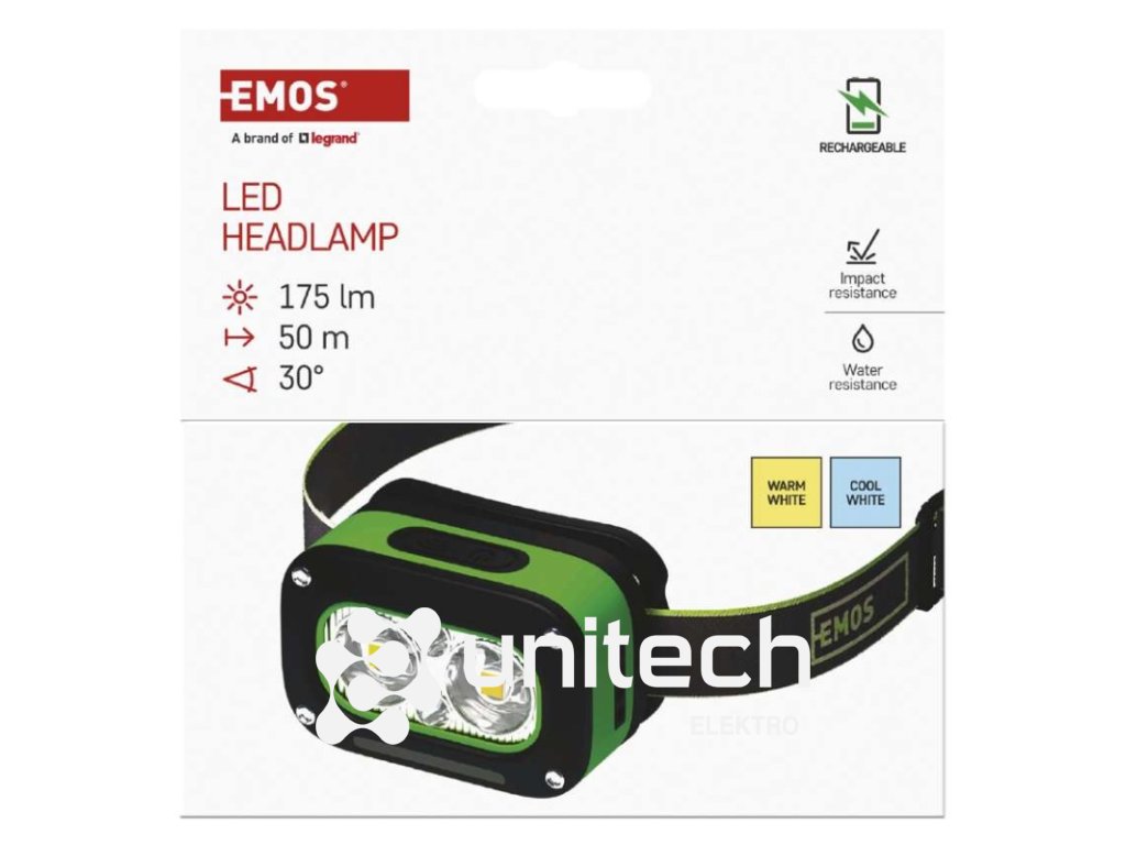 barva: zeleno-čierna|batérie súčasťou balenia: áno|doba nabíjania: 2,5 hodiny|doba svietenia: 2–4,5 h|doba svietenia detail: LED 100 % – 3,5 h, LED 100 % – 4,5 h, LED + LED – 2 h|dosvit: LED 100 % – 35 m, LED 100 % – 35 m, LED + LED – 50 m|fokus: nie|hmotnosť: 56 g|LED indikácia nabíjania: áno|LED indikácia stavu akumulátora: áno|materiál: plast|maximálny dosvit: 50 m|maximálny svetelný tok: 175 lm|nabíjací: áno|napájanie: Li-pol|nárazuvzdornosť: áno|počet režimov svietenia: 5|predajný obal: 1 ks, papierová krabička|príslušenstvo: USB-C kábel|reflexný pásik: nie|režimy: LED 100 %, LED 100 %, LED+LED 100 %, Červená LED, Červená LED bliká|rozmer: 52 × 29 × 35 mm|špeciálna funkcia: zapnutie pohybom ruky, funkcia rýchleho vypnutia, funkcia ochrany batérie|svetelný tok: LED 100 % – 100 lm, LED 100 % – 100 lm, LED + LED – 175 lm|typ batérie: 800 mAh/3,7 V|typ napájacieho konektoru: USB-C|uhol vyžarovania: 30°|vodeodolná: áno (IP43)|vybavenie: fluorescenčný pásik|záručná doba: 2 roky|zdroj svetla: 3× LED|značka: EMOSDodatočné parametre